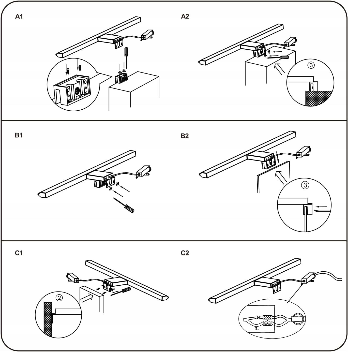 Łatwa w montażu, może być zamocowana nad lustrem lub szafką za pomocą dołączonych akcesoriów.