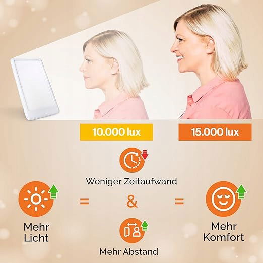 Spędź zimę z uśmiechem: Dzięki intensywnemu białemu światłu możesz rzucić wyzwanie depresji i naładować baterie każdego dnia dzięki tej lampie do terapii światłem o natężeniu 15 000 luksów. Ta lampa o świetle dziennym zwalcza słabe fazy bez energii, poprawia czujność i nastrój.