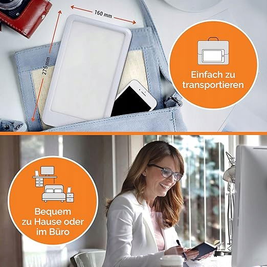 Koniec ze złym nastrojem w ciemne zimowe dni: Lampy do terapii światłem są często używane w krajach nordyckich, aby zrekompensować brak światła zimą. Ta przenośna lampa stojąca z lampą dzienną do terapii światłem o natężeniu 15 000 luksów towarzyszy Ci wszędzie i zapewnia, że pozostaniesz w dobrym nastroju.