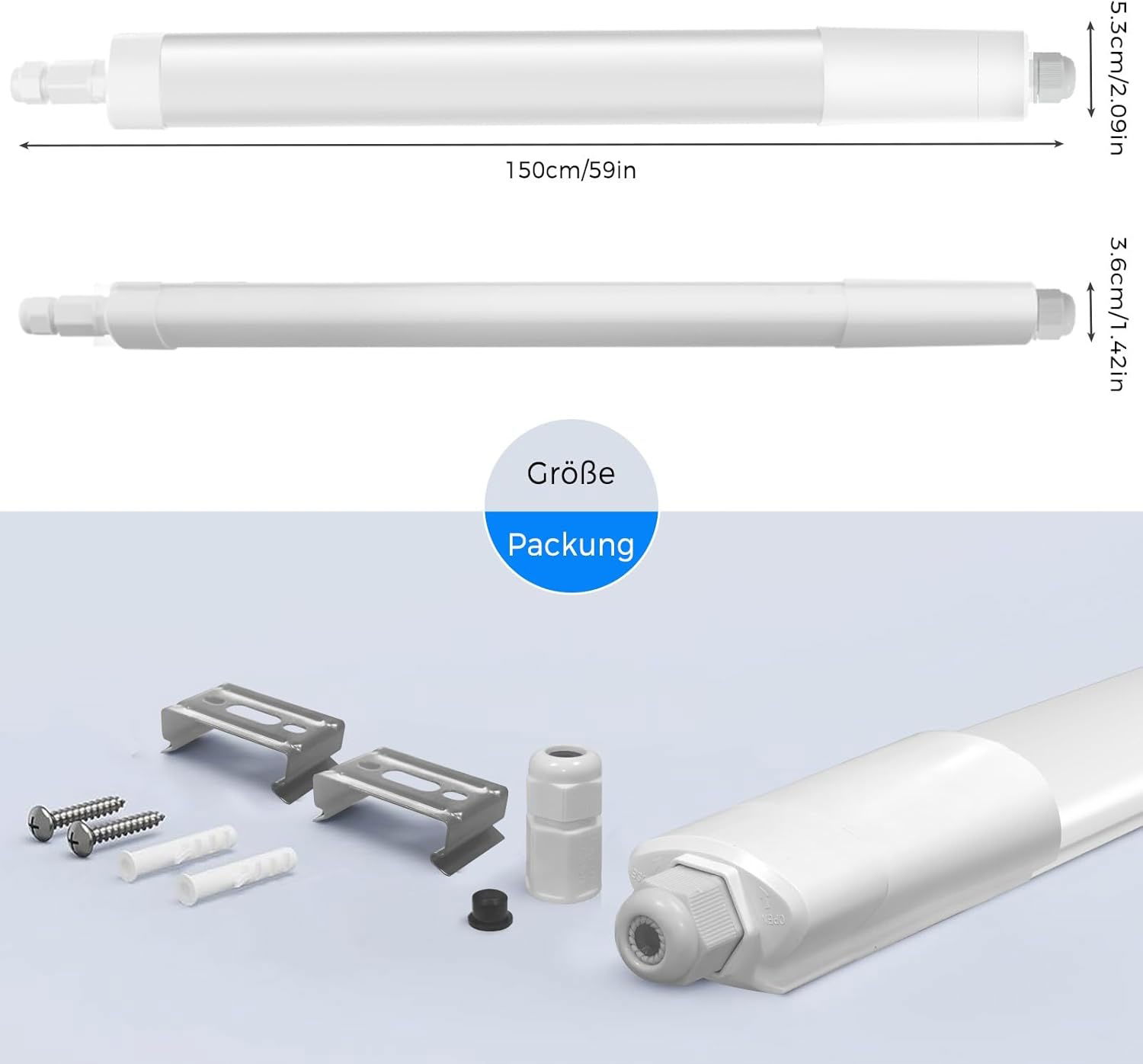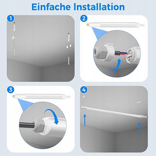 Bezpieczne i energooszczędne: Efektywność energetyczna do 110 LM/W przy 150 cm świetle LED w pomieszczeniach mokrych. Uniwersalne zastosowanie w kuchniach, korytarzach, łazienkach, piwnicach, warsztatach, magazynach, biurach lub fabrykach.