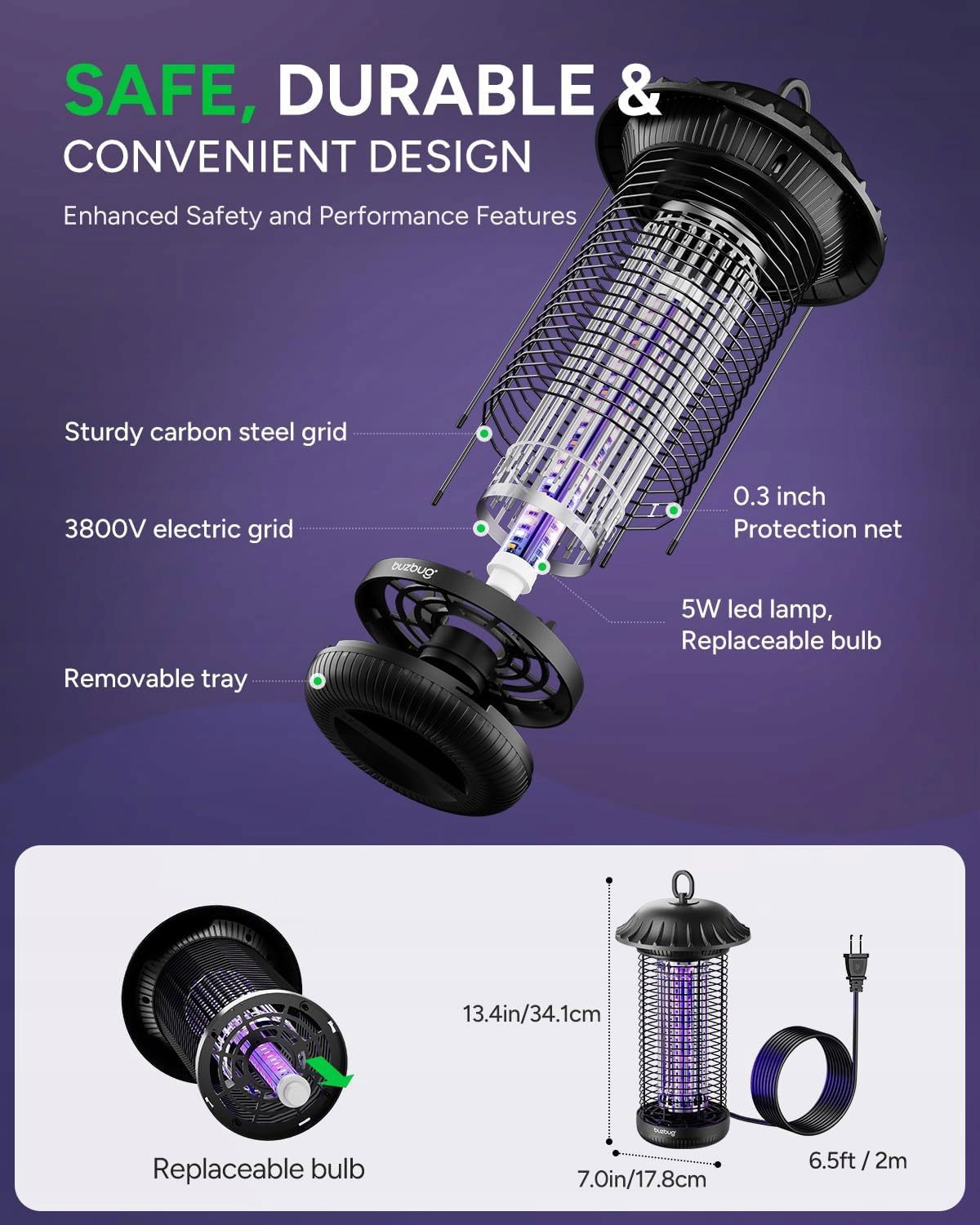 Lampa owadobójcza Buzbug MO-008C to skuteczne i ekologiczne rozwiązanie do walki z uciążliwymi owadami — zarówno w domu, jak i na zewnątrz. Urządzenie przyciąga komary, muchy i ćmy za pomocą światła LED, a następnie eliminuje je bez użycia chemii.