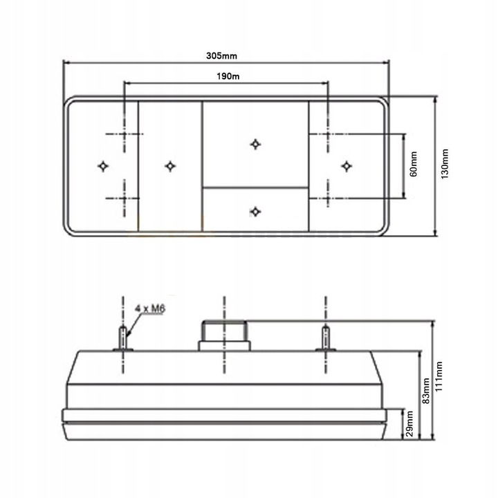Nowy PRAWY KLOSZ lampy tylnej strona pasażera tył pod zabudowę do skrzynia kontener - DUŻE GNIAZDO 5 pinowe