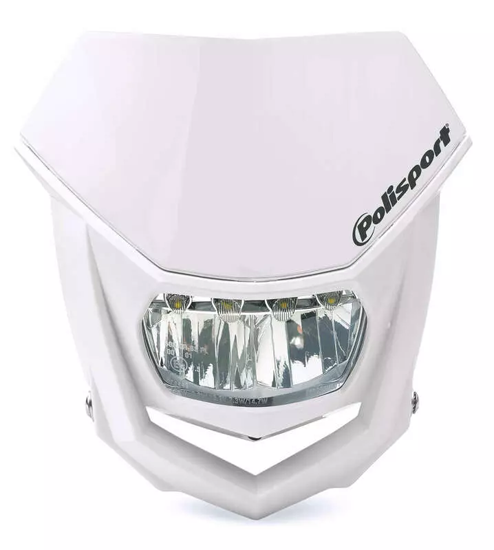 Lampa przednia Polisport Halo LED to nowoczesne oświetlenie motocyklowe, wyposażone w technologię LED zapewniającą jasne i energooszczędne światło. Zaprojektowana do pracy z prądem stałym 12V, oferuje charakterystyczny pierścień świetlny "Halo" oraz białą obudowę. Jest to uniwersalne rozwiązanie do motocykli off-road, enduro lub projektów customowych.