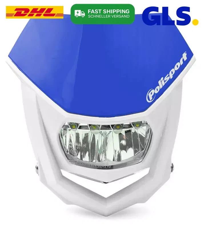 Uniwersalna lampa przednia typu Halo, przeznaczona do motocykli, zwłaszcza off-road lub customowych. Wyposażona w nowoczesną żarówkę LED, która zapewnia jasne i energooszczędne oświetlenie. Posiada charakterystyczny niebieski kolor obudowy, nadający motocyklowi unikalny wygląd.