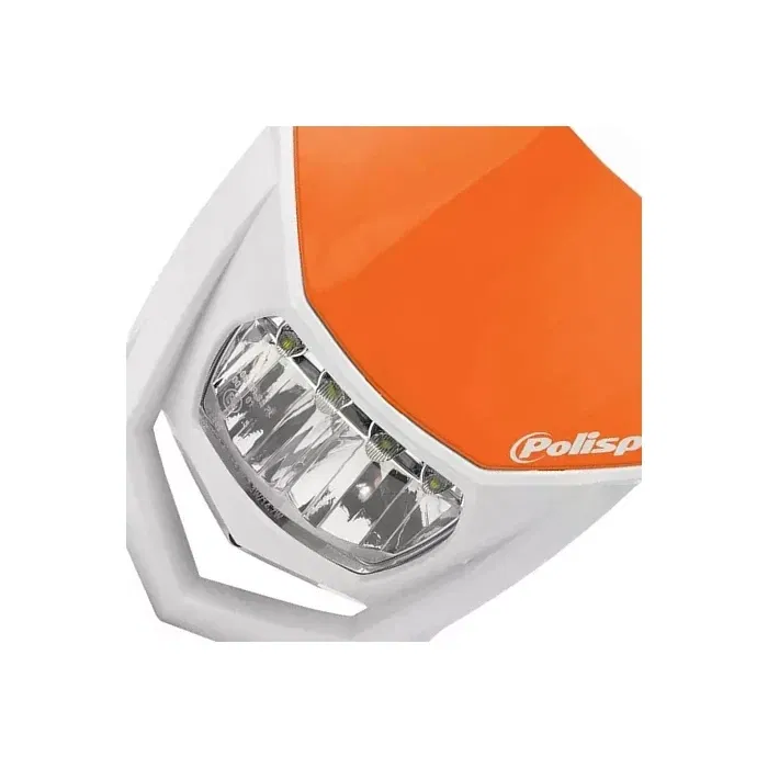 Lampa przednia Polisport Halo to uniwersalne rozwiązanie oświetleniowe, zaprojektowane do motocykli off-road. Wyposażona jest w nowoczesną żarówkę LED, zapewniającą jasne i energooszczędne światło. Charakteryzuje się pomarańczowym kolorem obudowy, co nadaje jej wyrazisty wygląd.