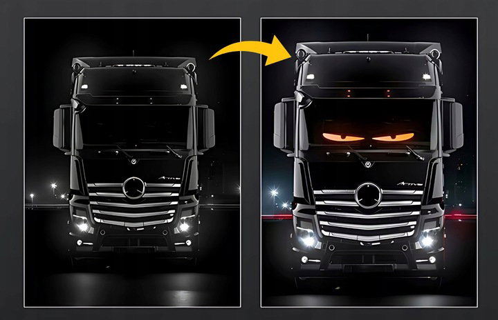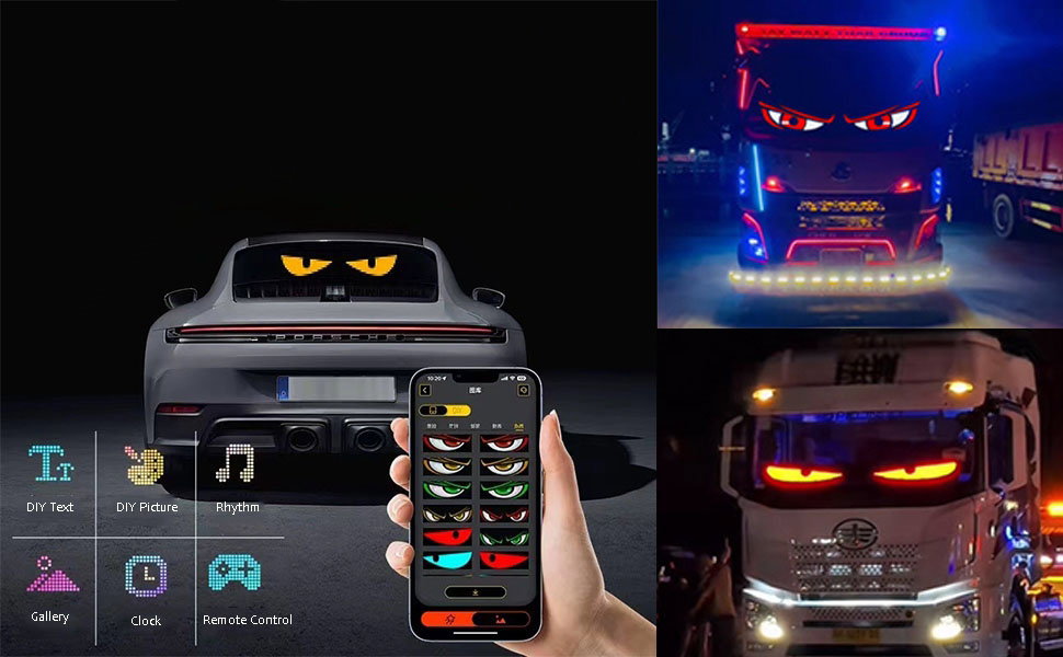 Lampa LED umożliwia wyświetlanie symboli, tekstów oraz animacji, w tym kultowych Devil's Eyes, przyciągając wzrok i dodając pojazdowi unikalnego stylu.