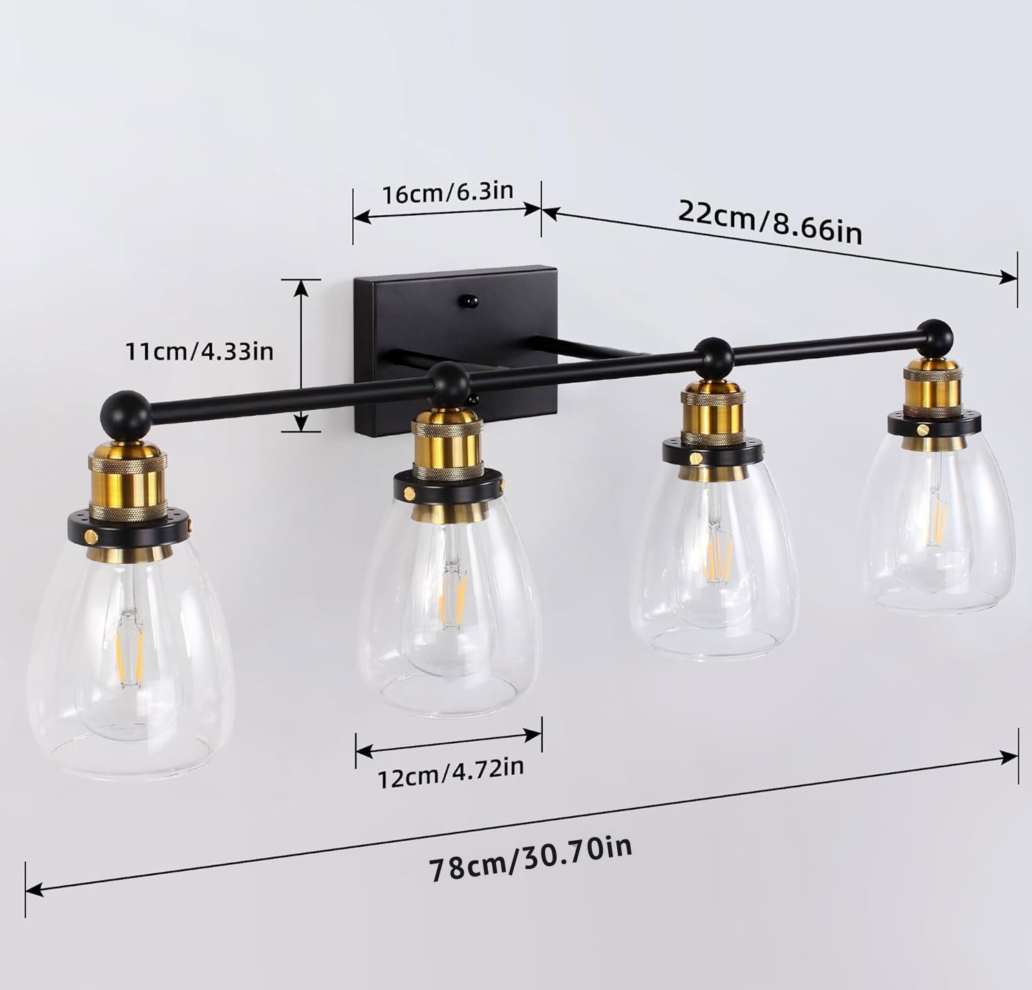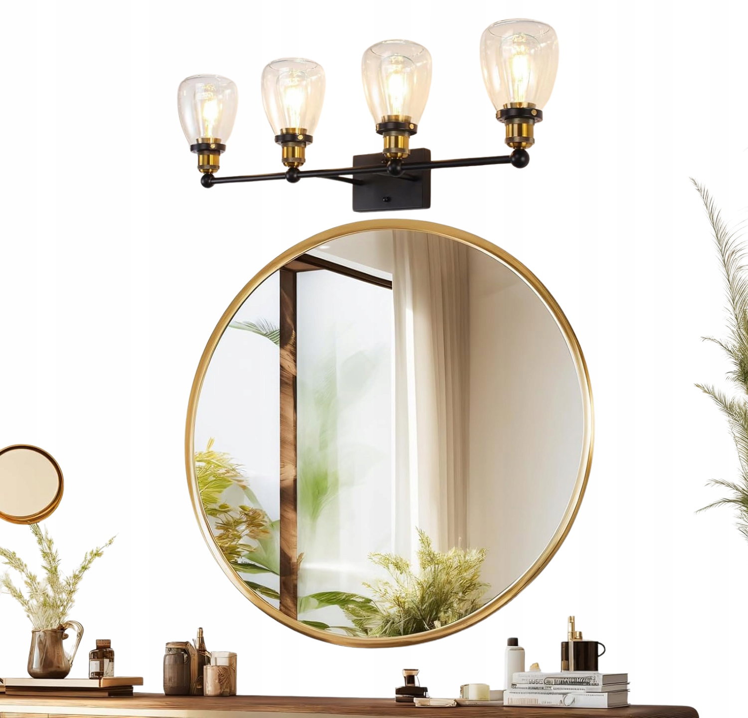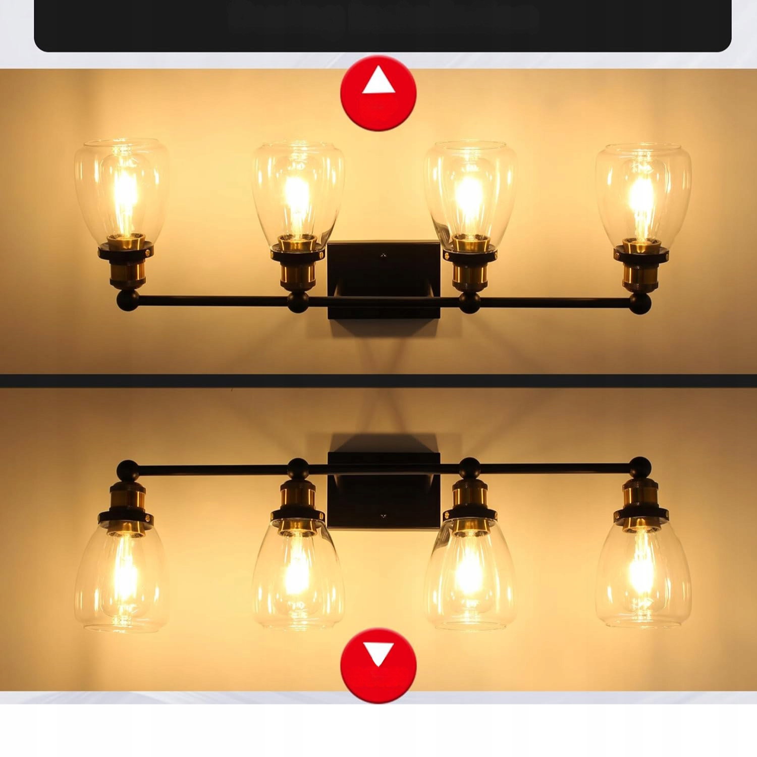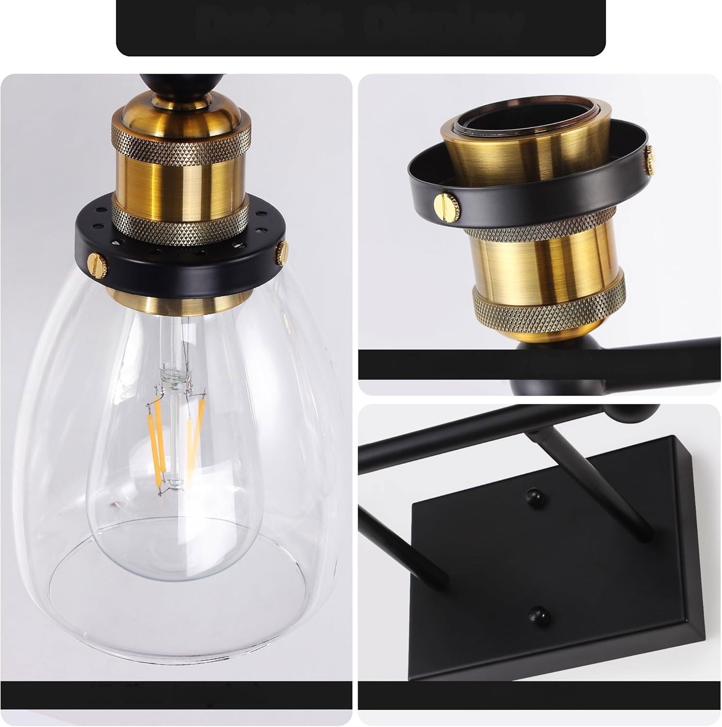 MantoLite Przemysłowa lampa ścienna, 4 lampy, szklany klosz, gwint E27, oświetlenie ścienne, retro, vintage, kinkiet, oświetlenie ścienne, oświetlenie do salonu, umywalki, lampy ścienne, lampy [Klasa energetyczna F]