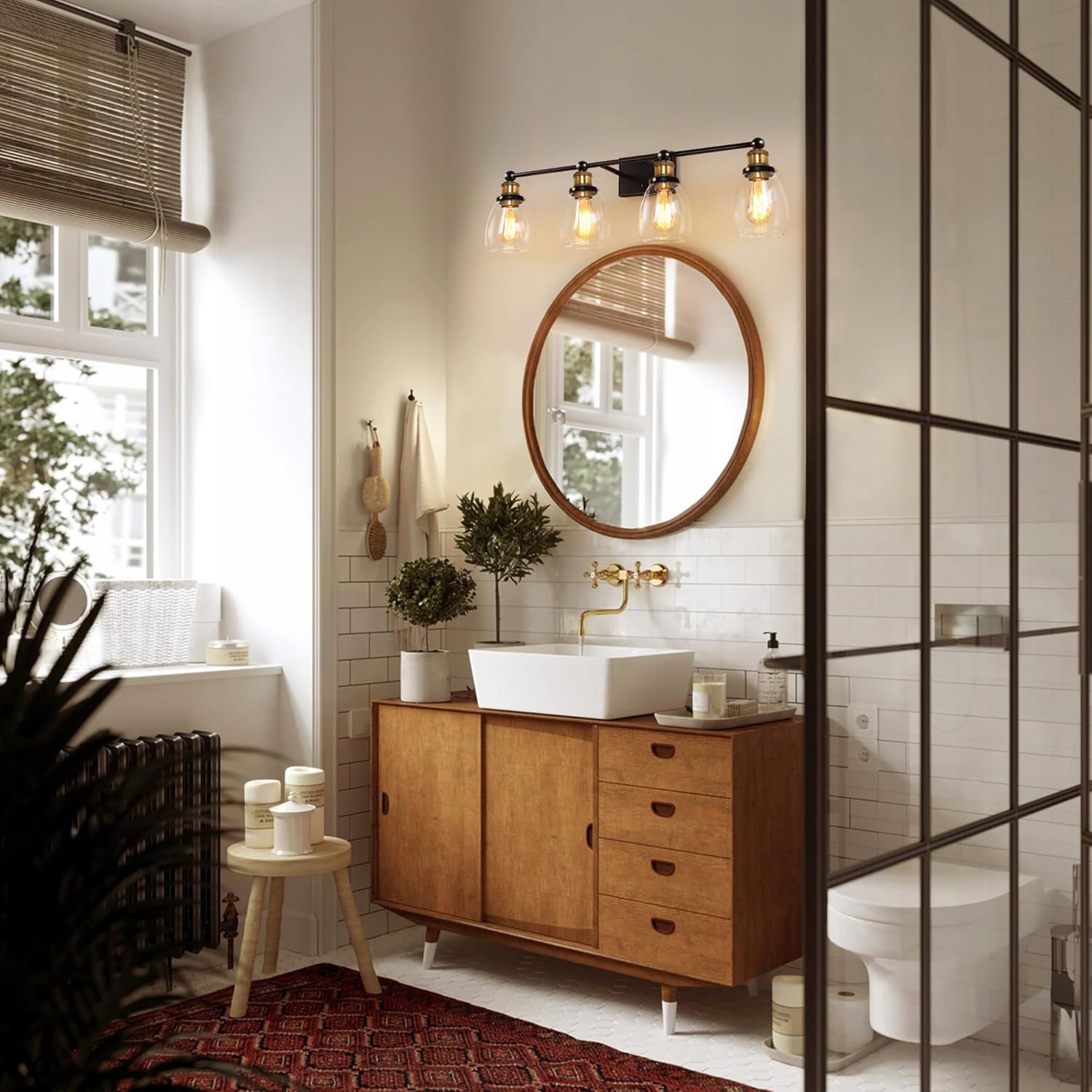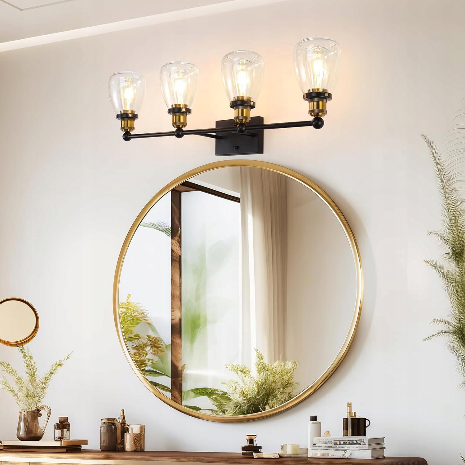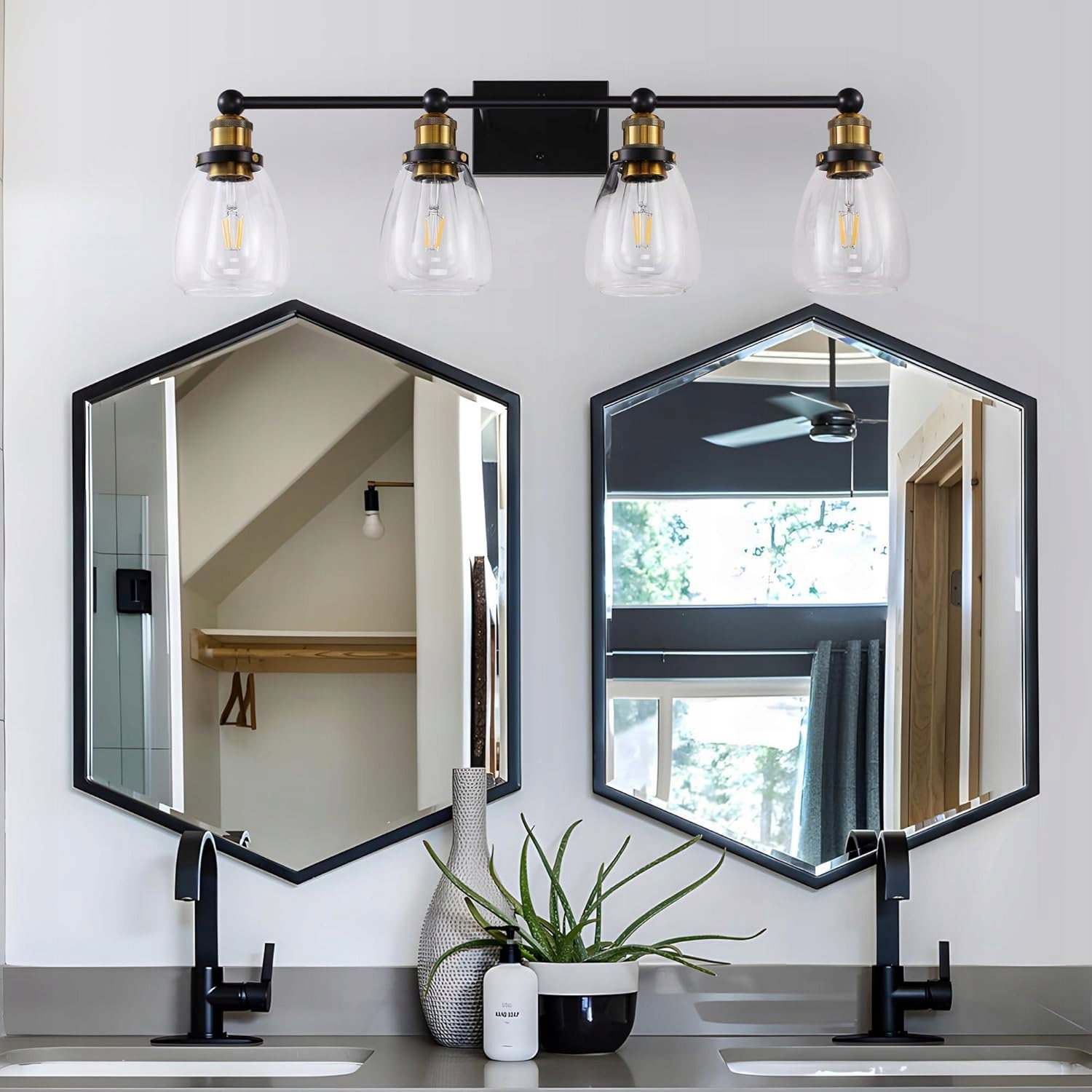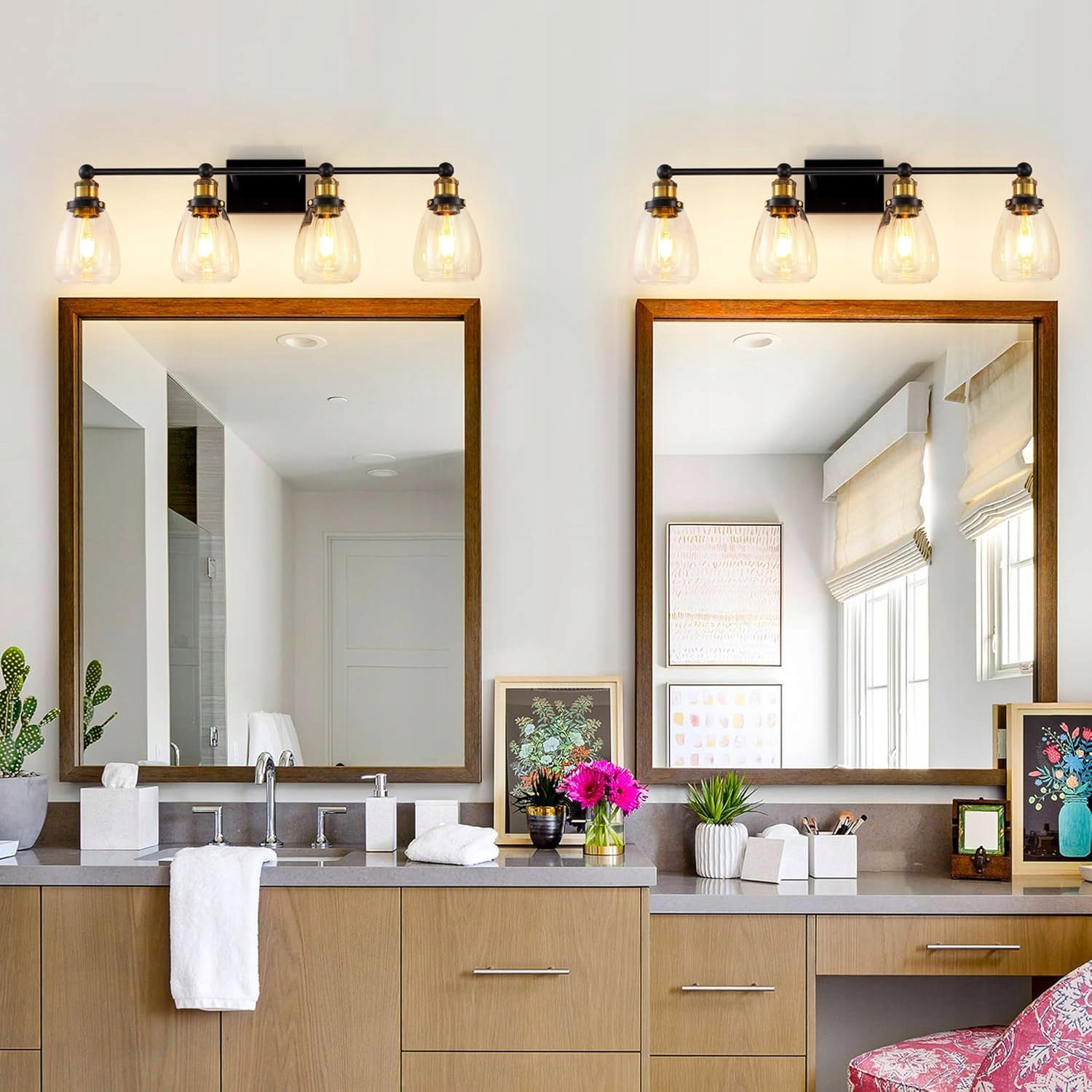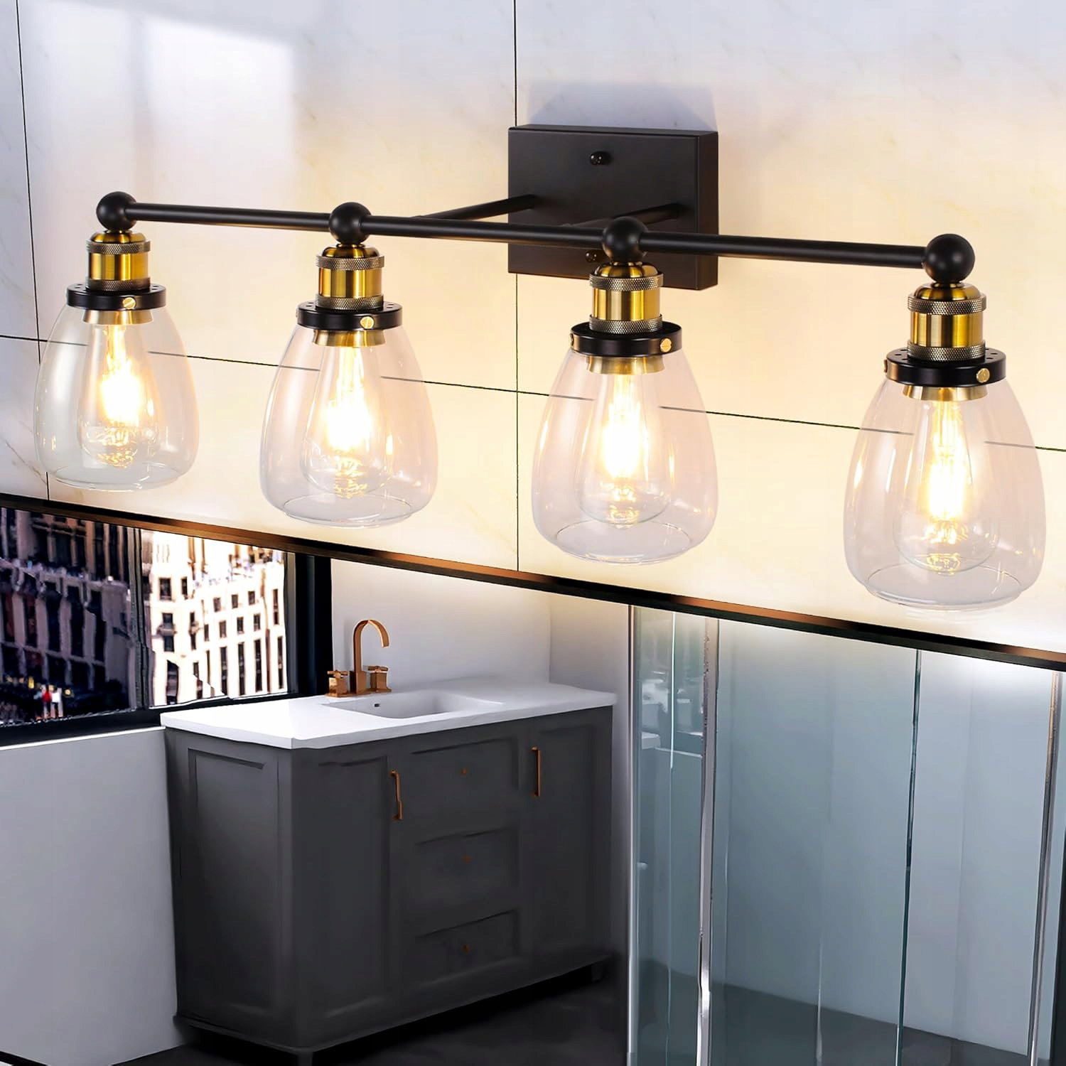 MantoLite Przemysłowa lampa ścienna, 4 lampy, szklany klosz, gwint E27, oświetlenie ścienne, retro, vintage, kinkiet, oświetlenie ścienne, oświetlenie do salonu, umywalki, lampy ścienne, lampy [Klasa energetyczna F]