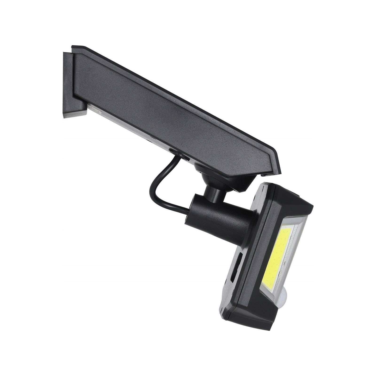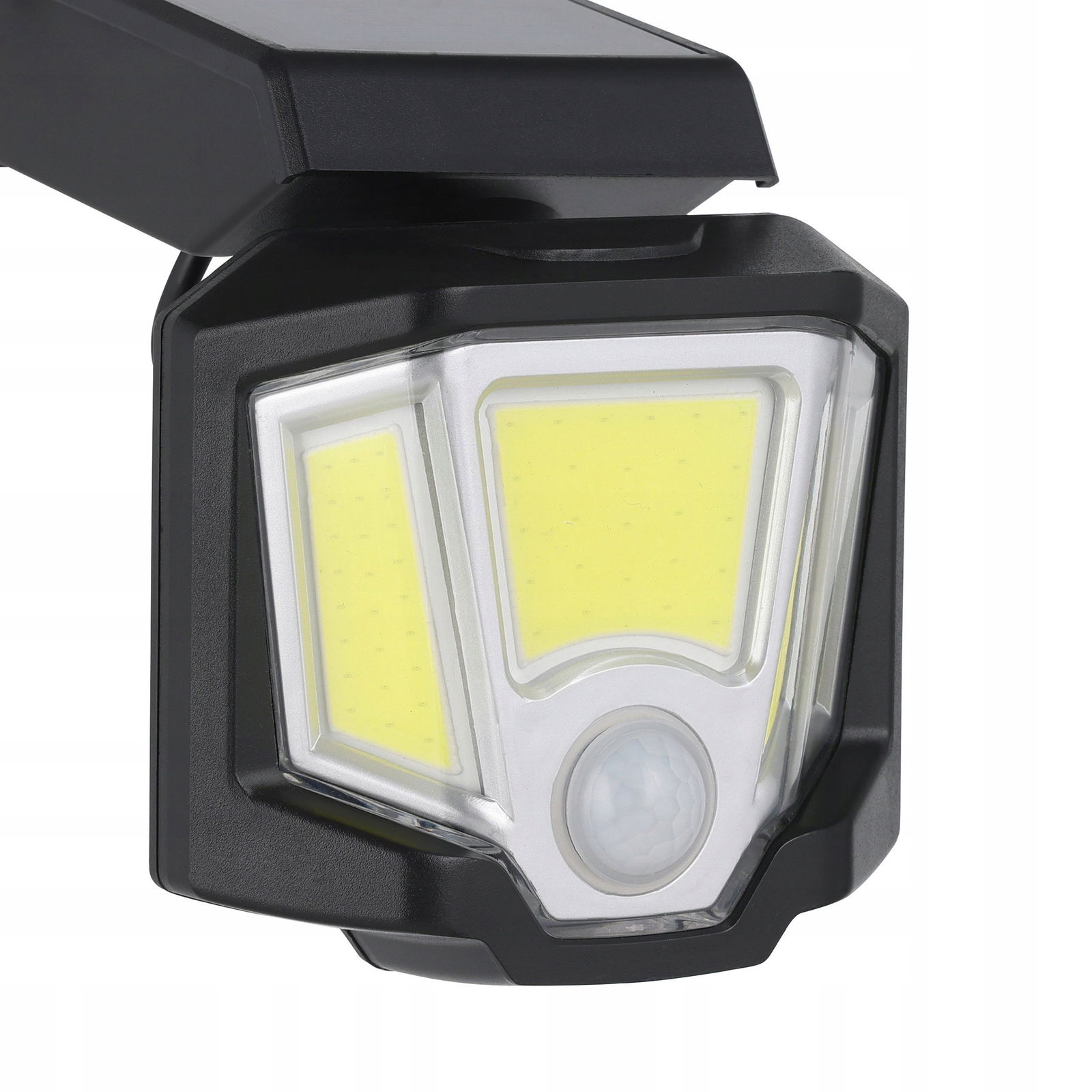 Funkcjonalna lampa solarna z czujnikiem ruchu, emitująca chłodne światło, idealna do oświetlenia miejsc zewnętrznych.