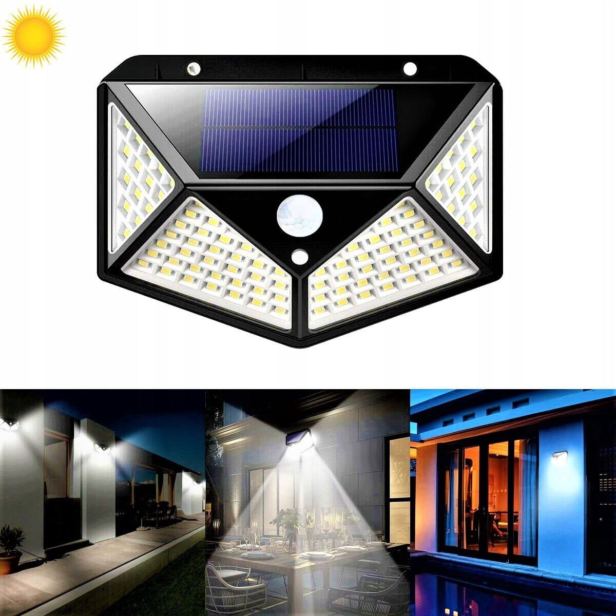 100 LED solární snímač pohybu, pouliční nástěnné světlo, venkovní bezpečnostní lampa