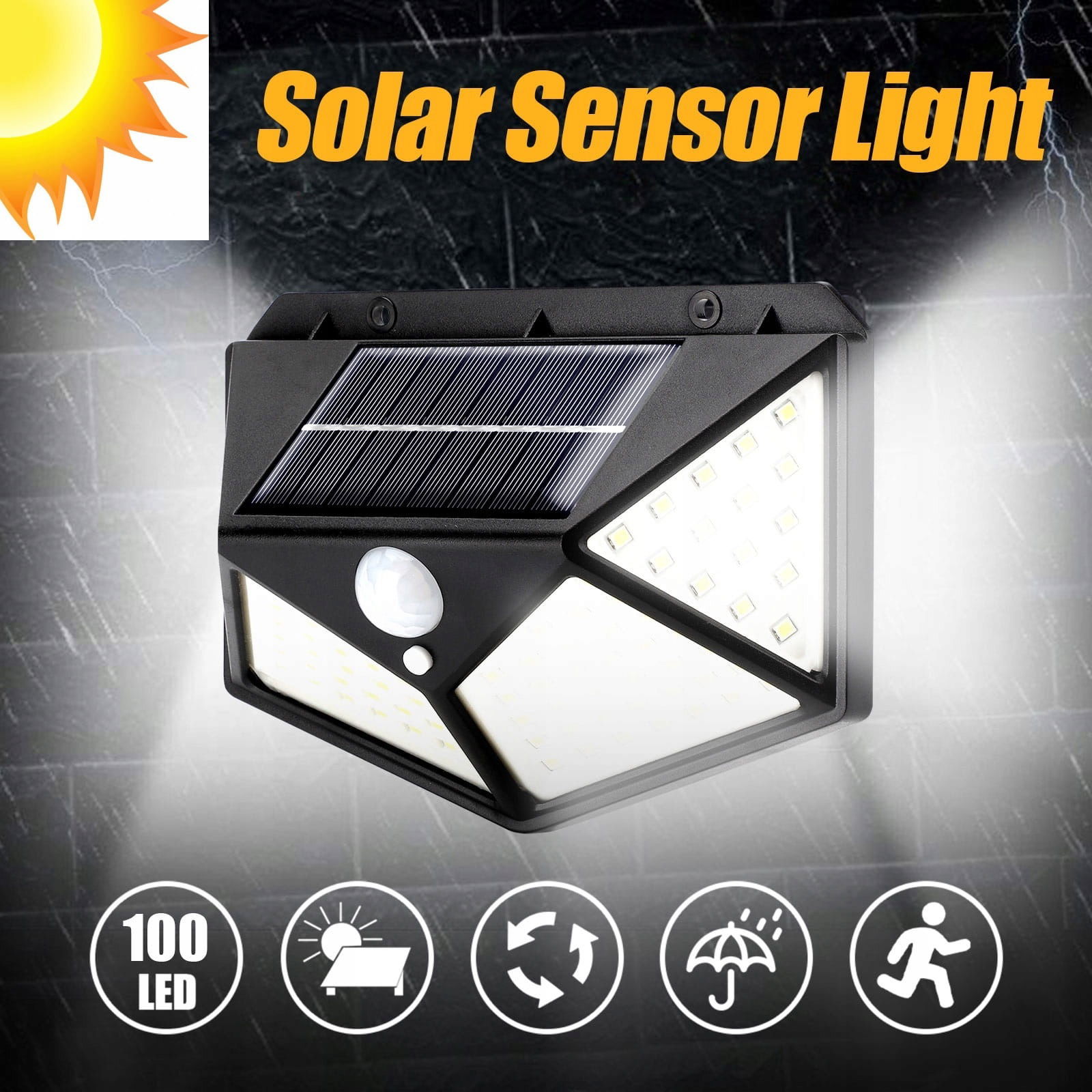 - ماء 100 ليد طاقة شمسية مستشعر حركة ضوء حديقة جدار مصباح