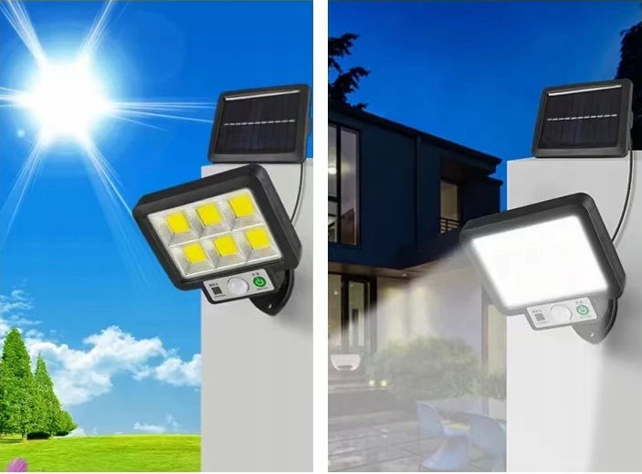 Zewnętrzna lampa LED ładowana panelem słonecznym to zdecydowanie jedno z lepszych urządzeń oświetleniowych z całkowicie darmowym, nieskończonym źródłem energii. Panel podłączany do lampy długim kablem 5 metrowym umożliwia mocowanie lampy w miejscu trudno dostępnym dla światła i przeciągnięcie panelu ładującego w korzystne miejsce. Przeznaczona do montowania na ścianie, wyposażona w czujnik ruchu i zmierzchu. Lampa ładuje się w ciągu dnia i przechowuje energie słoneczną w pojemnej baterii litowej, aby świecić w ciągu nocy. Dzięki swojej wysokiej klasie szczelności, jest odporna na ciężkie warunki atmosferyczne.