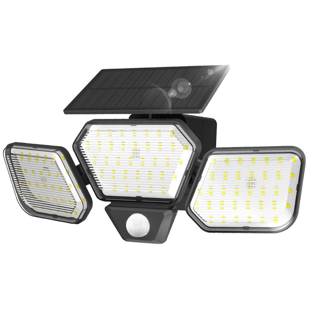 Lampa solarna z czujnikiem ruchu 3-głowicowa LED 108 diod 1600lm IP65 6500K