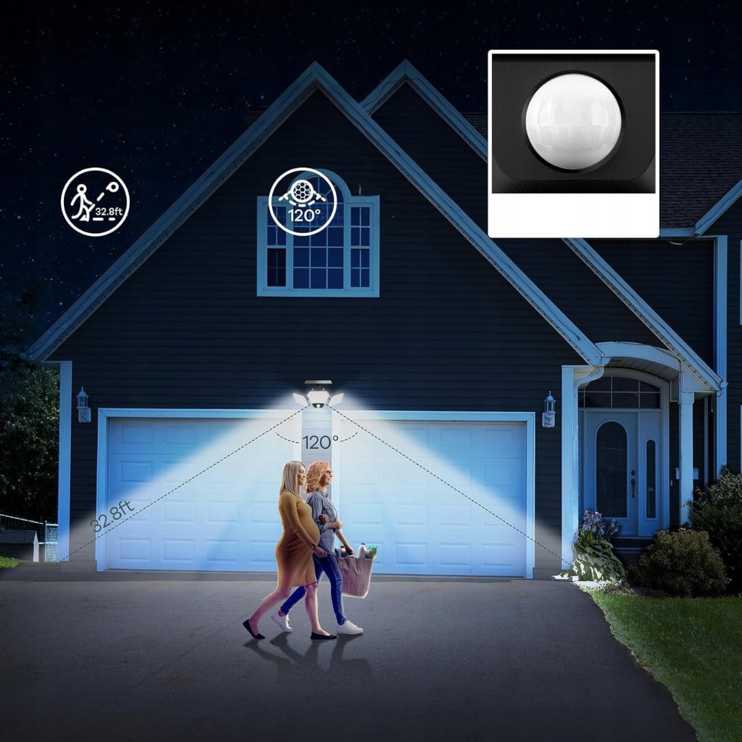 Lampa solarna Linkind z trzema głowicami to wydajne źródło światła zewnętrznego wyposażone w czujnik ruchu i 108 diod LED, które zapewniają jasność 1600 lumenów.