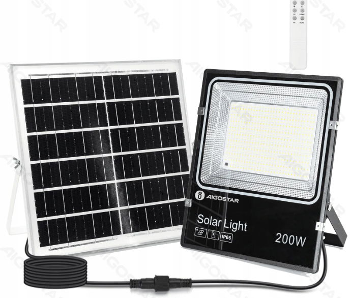 Lampa solarna zewnętrzna led naświetlacz 200W panel 5m IP66