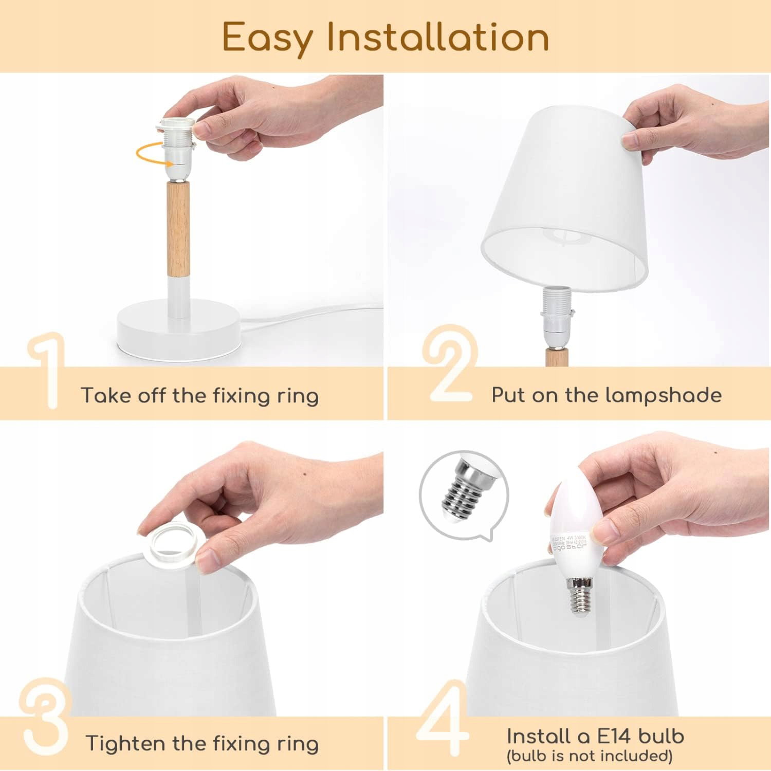 【Uchwyt żarówki E14】Kompatybilny z żarówką E14 (brak w zestawie), kompatybilny z szeroką gamą żarówek Edisona, LED i halogenowych (maks. 25 W, wejście: AC 220-240 V). Łatwy w instalacji.