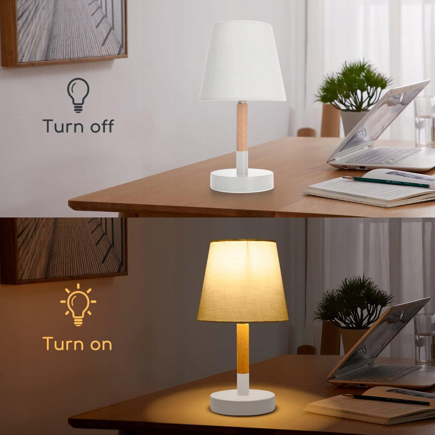 【Wysokiej jakości podstawa lampy】Podstawa lampki nocnej wykonana jest z wysokiej jakości metalu, z naturalnym drewnianym drążkiem, jest odporna na rdzę i ma nowoczesną fakturę, dzięki czemu Twój dom stanie się wyrafinowany i elegancki.