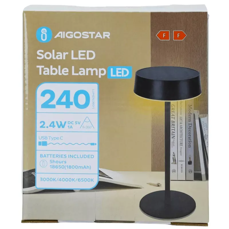 Lampa stołowa LED solarna lub USB ambientowa czarna 2,4W IP44 CCT