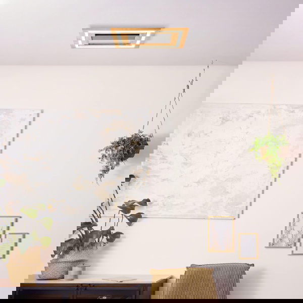 Lampa sufitowa BRILLIANT RHEA to nowoczesne oświetlenie LED w eleganckim wykończeniu imitującym jasne drewno. Dzięki wbudowanemu źródłu światła zapewnia równomierne, ciepłe oświetlenie, które sprawdzi się w salonie, sypialni, jadalni czy biurze. Prosty design świetnie komponuje się z klasycznymi i nowoczesnymi wnętrzami.