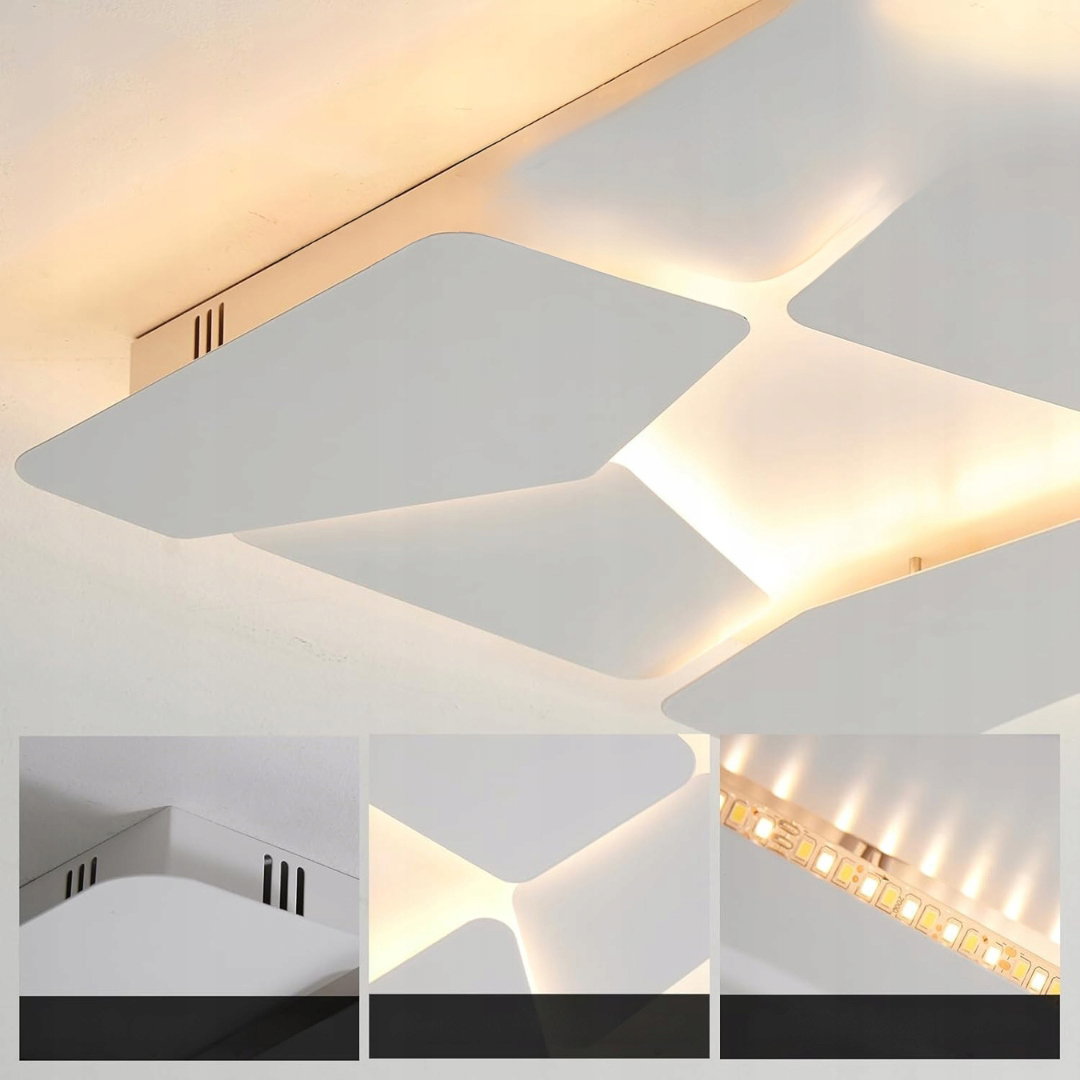- Dekoracja i oświetlenie: nowoczesna, ściemniana lampa LED sprawdza się zarówno jako efektowny element dekoracyjny, jak i główne źródło światła. Doskonale nadaje się do sypialni, pokoju dziecięcego, salonu, gabinetu, jadalni, pralni, łazienki, biura, kuchni, sali wystawowej, hotelu i innych przestrzeni. Geometryczna konstrukcja z wyraźnymi liniami podkreśla charakter wnętrza po włączeniu światła, a jednocześnie może pełnić funkcję artystycznej dekoracji.