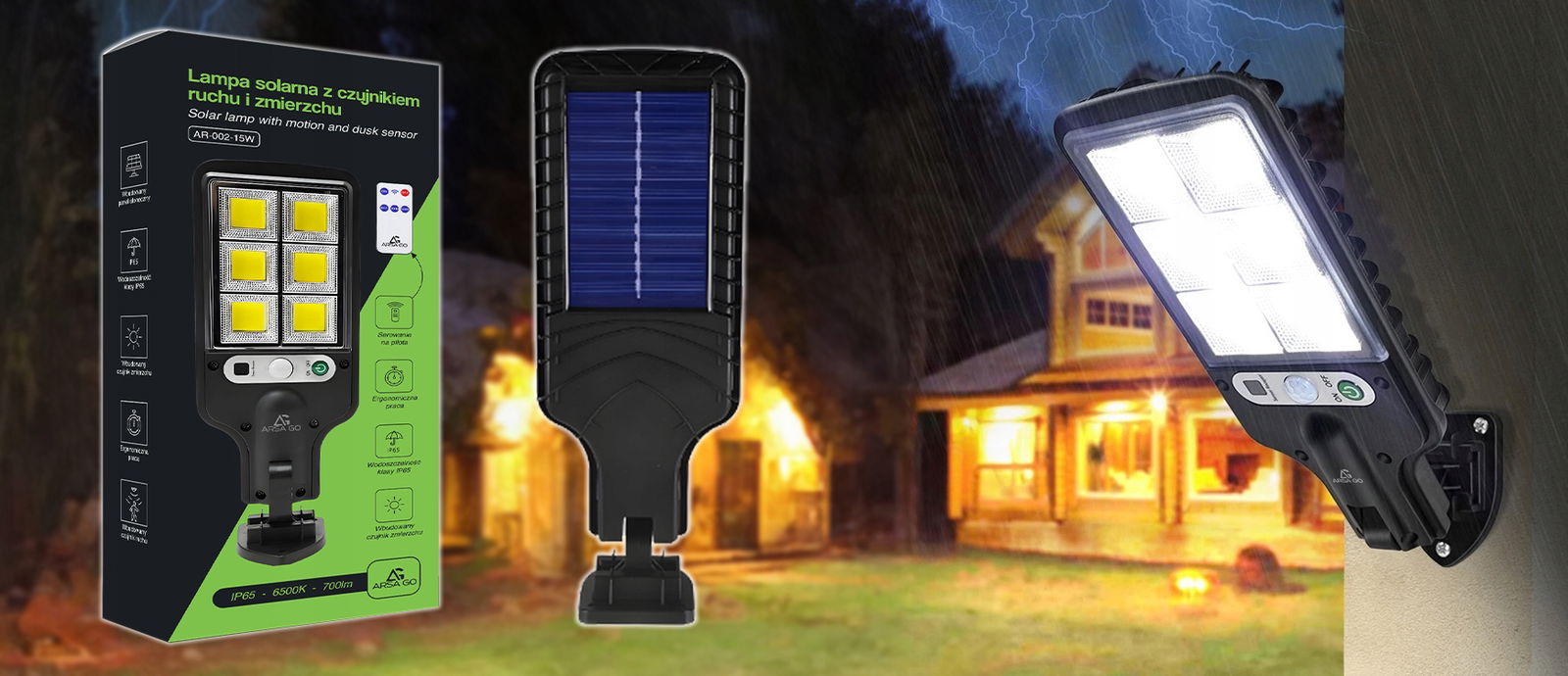 - Lampę solarną z czujnikiem ruchu i zmierzchu;