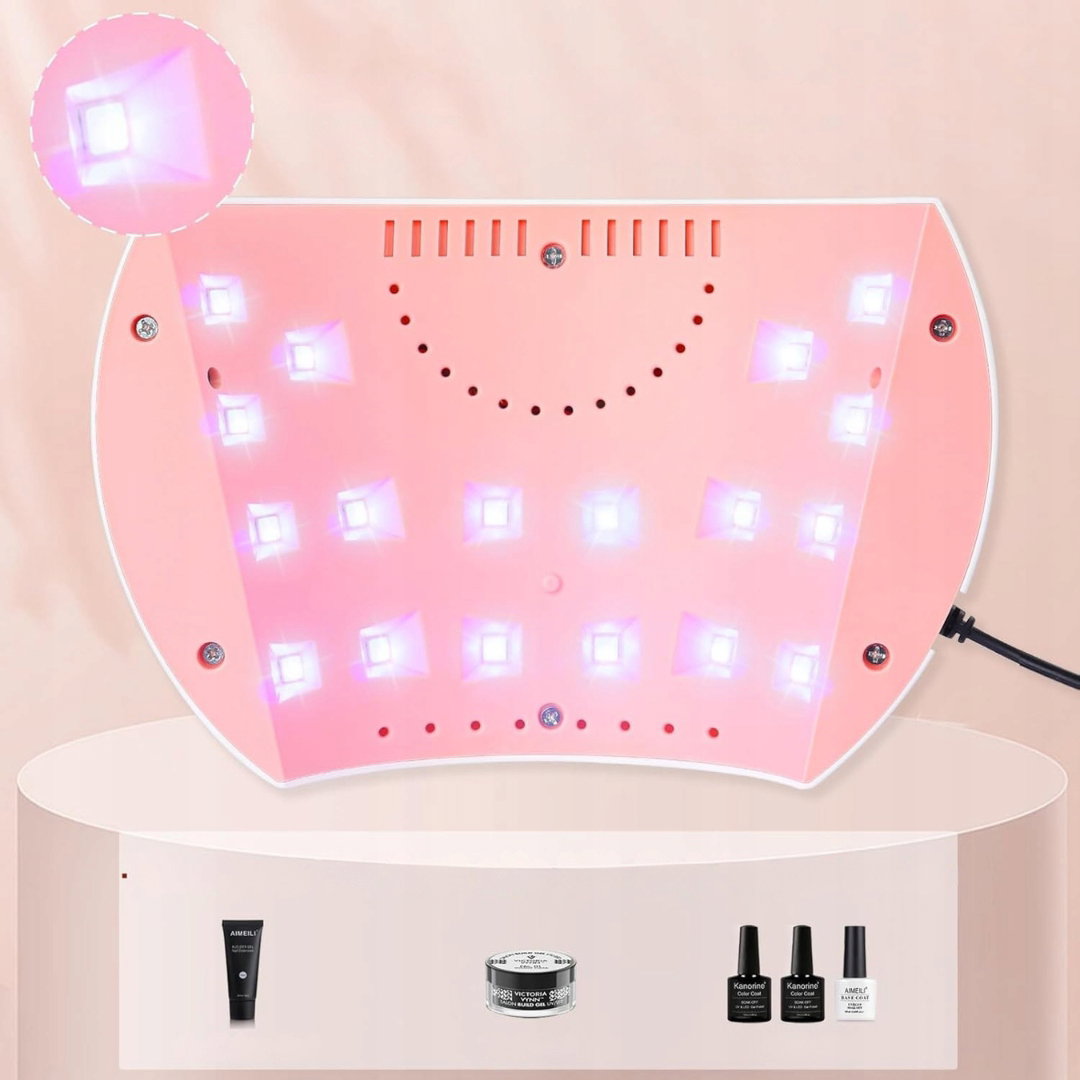 Lampa UV LKE 54 W to przenośne i wielofunkcyjne urządzenie do utwardzania lakierów żelowych, wyposażone w 18 diod UV/LED i technologię podwójnego źródła światła (365 nm + 406 nm).