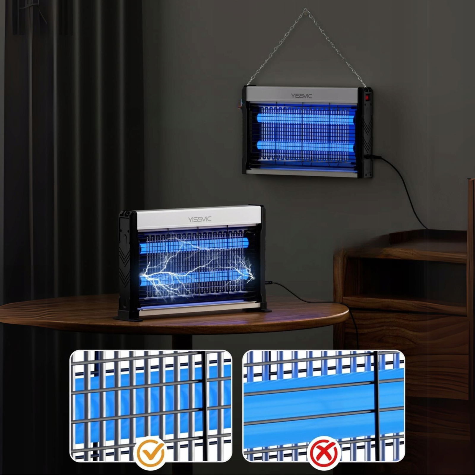 ✅ Specjalne światło ultrafioletowe przyciąga komary, muchy, ćmy i inne uciążliwe owady. Wysokie napięcie natychmiast eliminuje je bez użycia szkodliwych środków chemicznych.