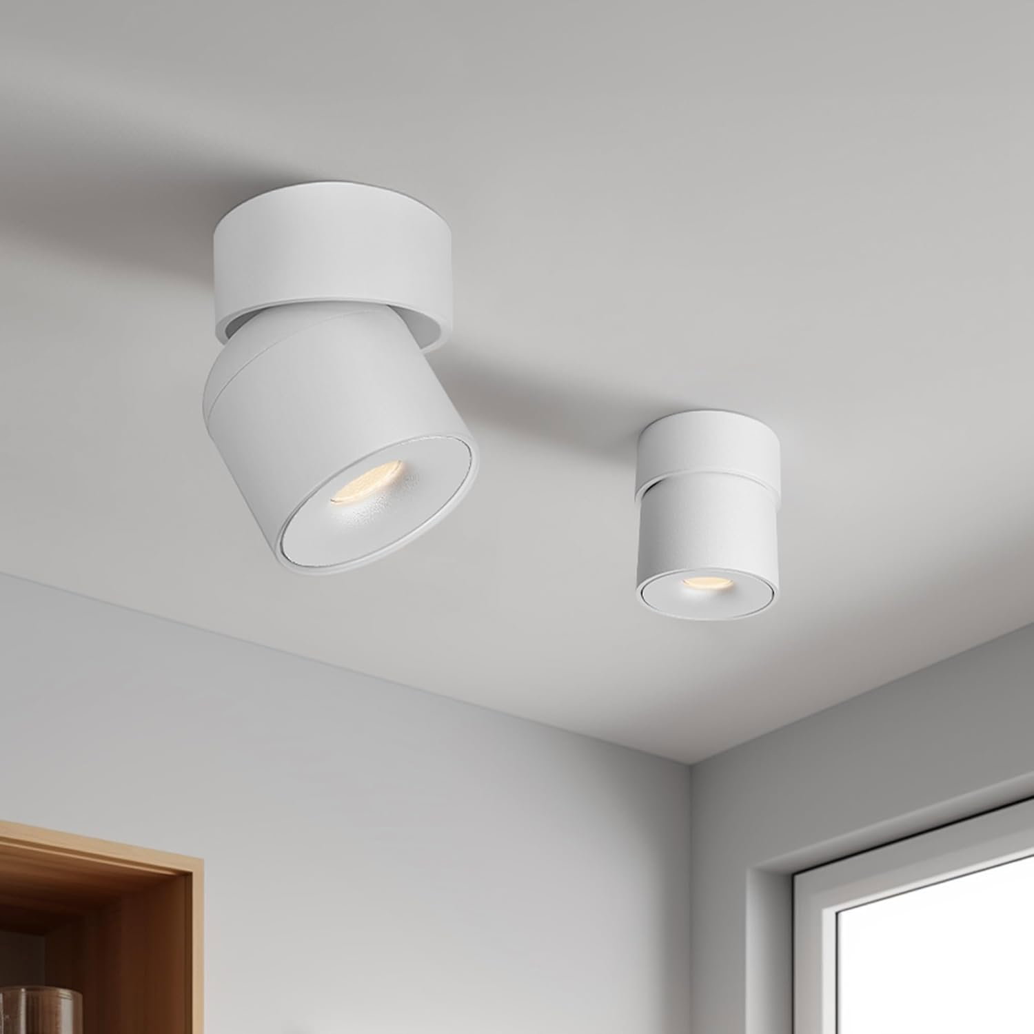 - Obrotowy reflektor sufitowy: Innowacyjny, obracany o 360° reflektor sufitowy, z możliwością obrotu w dwóch kierunkach, odpowiedni do oświetlenia pod różnymi kątami. Możesz ustawić własne akcenty świetlne, obracając je, aby skierować światło dokładnie tam, gdzie go potrzebujesz.