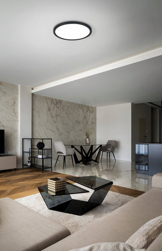 PLAFON LED 18W NA PILOTA firmy EGLO to nowoczesna lampa sufitowa LED, wykonana z białego tworzywa z czarną obwódką, to idealne rozwiązanie do każdego wnętrza. Wyposażona w zaawansowany moduł LED o mocy 18W i jasności 1900 lumenów, oferuje funkcję zmiany barwy światła oraz ściemniania, sterowaną za pomocą wygodnego pilota zdalnego sterowania.