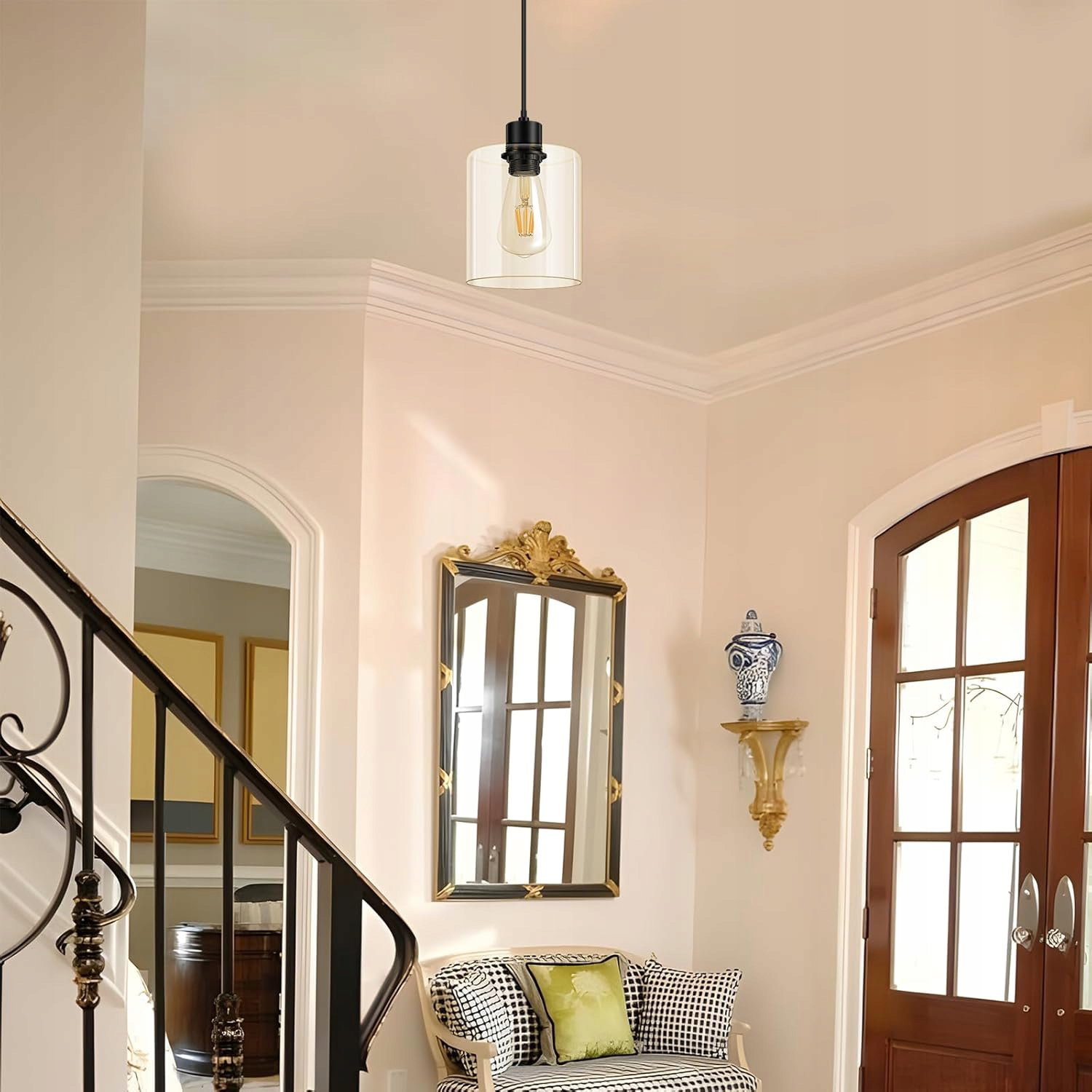 Eleganckie wzornictwo ze szklanym kloszem: ta lampa wisząca łączy w sobie przezroczysty, żłobiony szklany klosz (14 × 14 × 17 cm) z czarnym wyglądem vintage. Idealna jako lampa wisząca do salonu, kuchni lub korytarza – przyciąga wzrok w każdym wnętrzu.