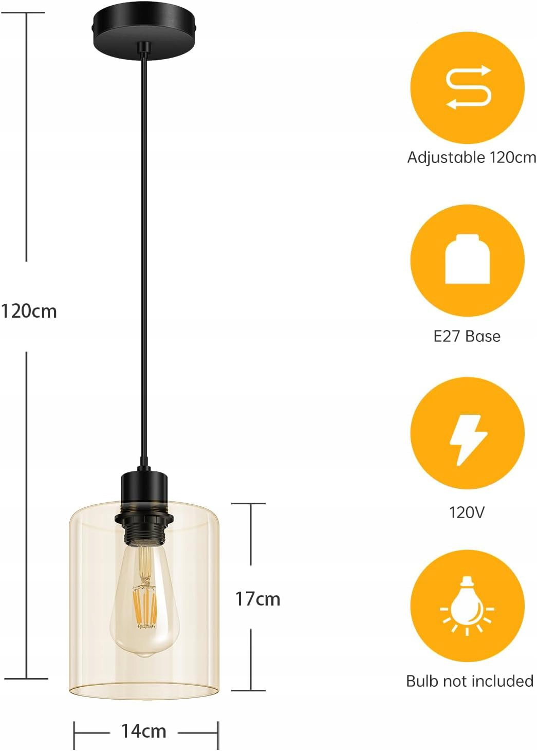 Oprawka E27 do wszechstronnego wyboru żarówek: wyposażona w oprawkę E27, lampa wisząca umożliwia korzystanie z różnych źródeł światła (nie wchodzą w zakres dostawy), od ciepłej bieli do zimnej bieli – dla uzyskania pożądanej atmosfery.
