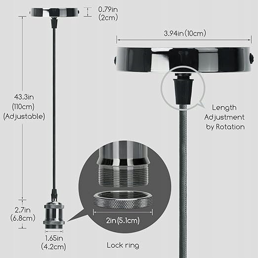 【Do E27】 Ta wisząca oprawka z gwintem jest dostępna w wersji z żarówką E27, standardową lampą gwintowaną E27, odpowiednią do różnych źródeł światła, dzięki czemu możesz tworzyć własne różne style (bez żarówki).