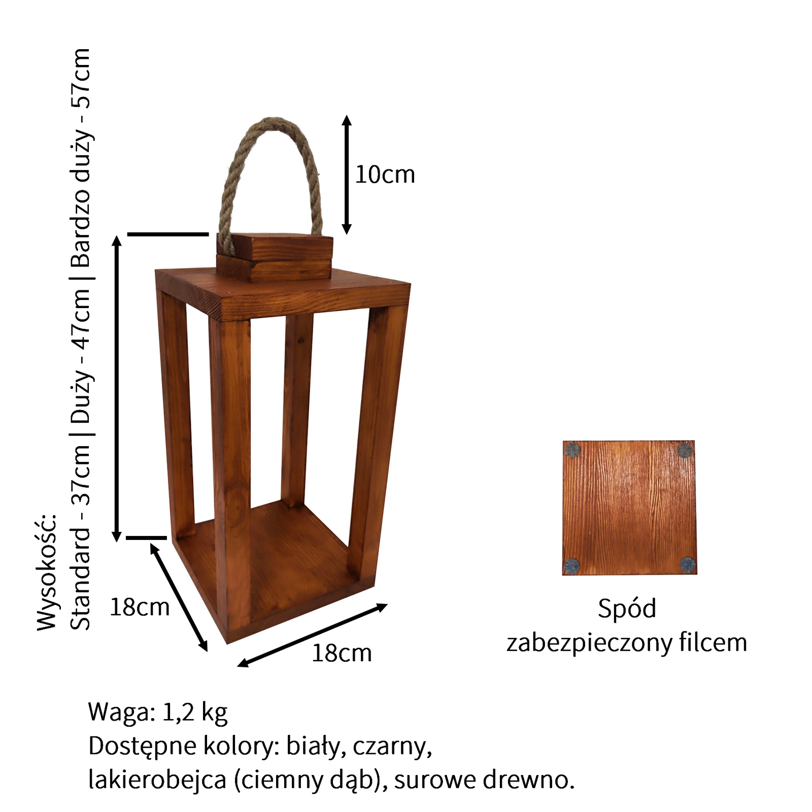 Na tej aukcji kupują Państwo, lampion drewniany klasyczny o wysokości 47cm, w kolorach do wyboru: