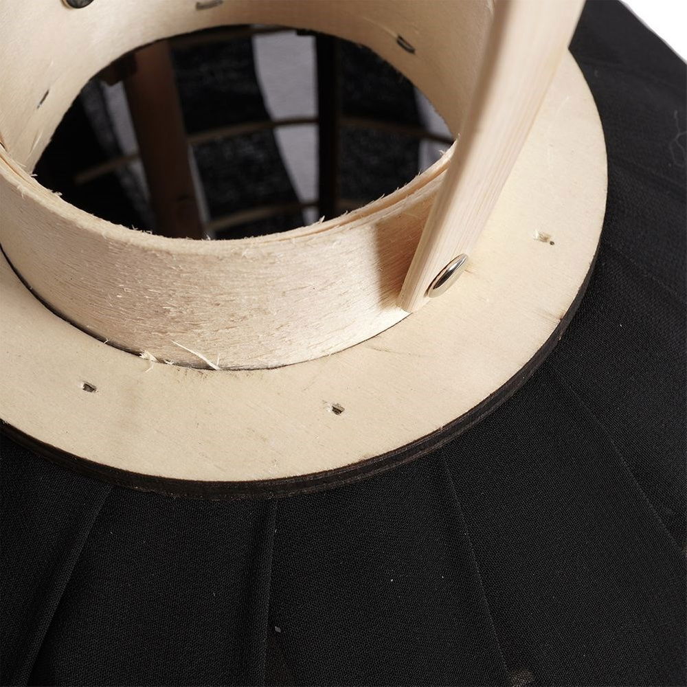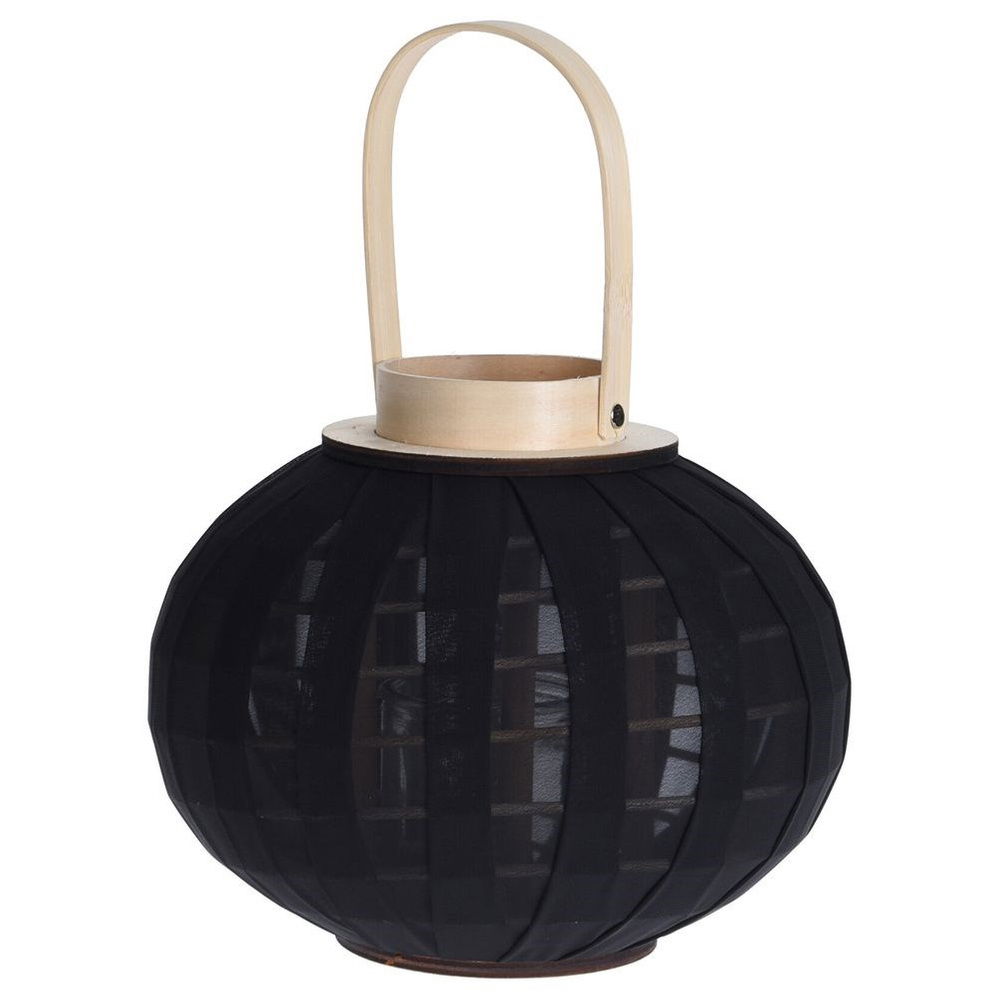 EFEKTOWNY - Lampion o wymiarach 22 x 24 cm wykonany z drewna oraz czarnej tkaniny.