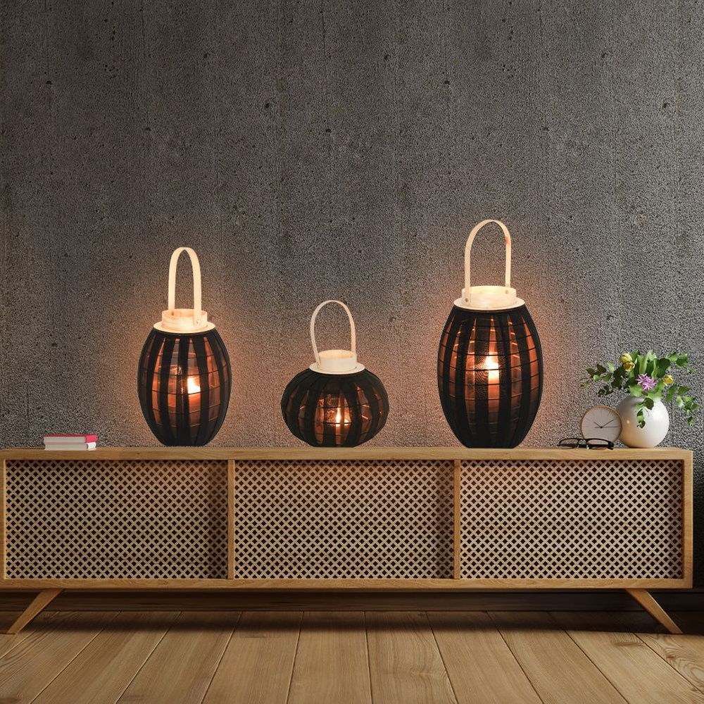 Lampion Drewniany Czarny Latarnia na Świeczkę Świecznik Boho do Domu Ogrodu