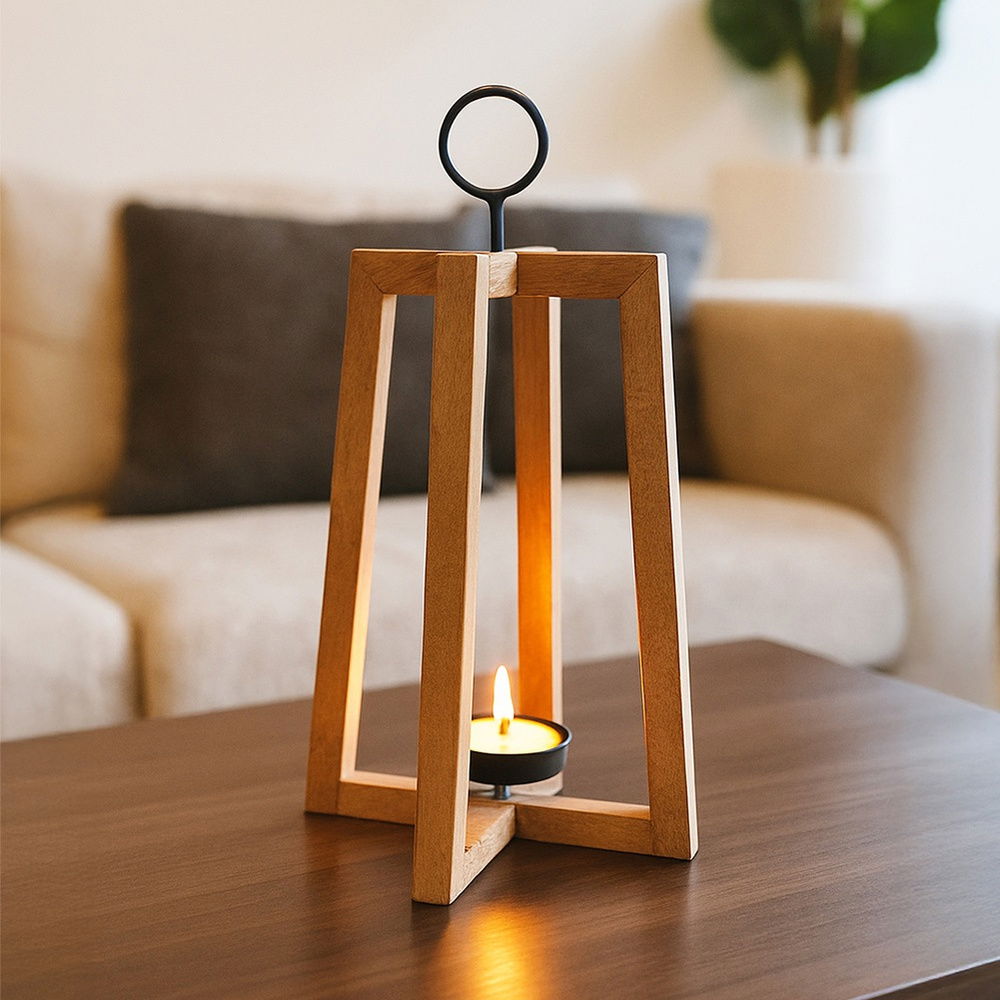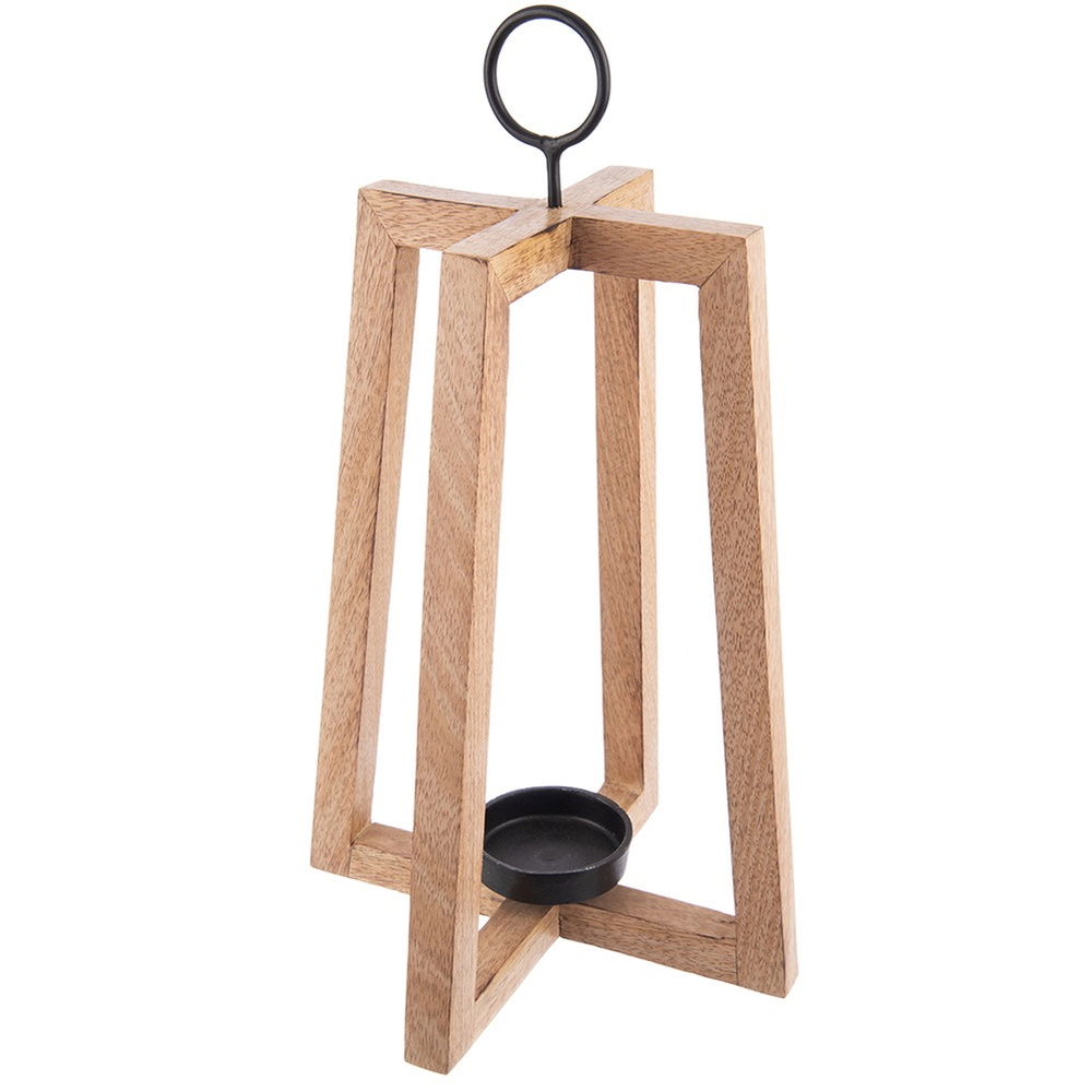 Lampion Drewniany Stojak Podstawka na Świeczkę Tealight Świecznik 44 cm