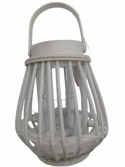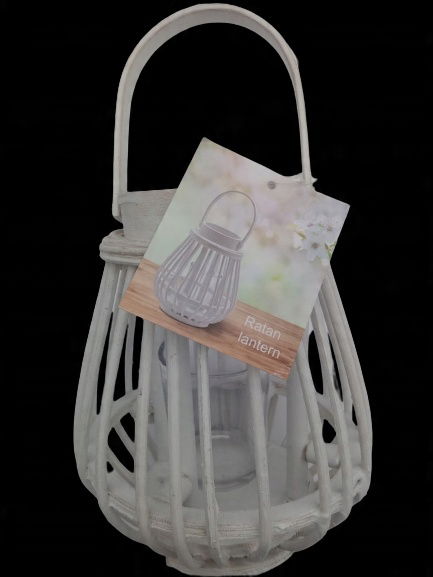 Ta cudna latarenka wykonana została z naturalnych materiałów tj. rattan i szkło. Pięknie się prezentuje.