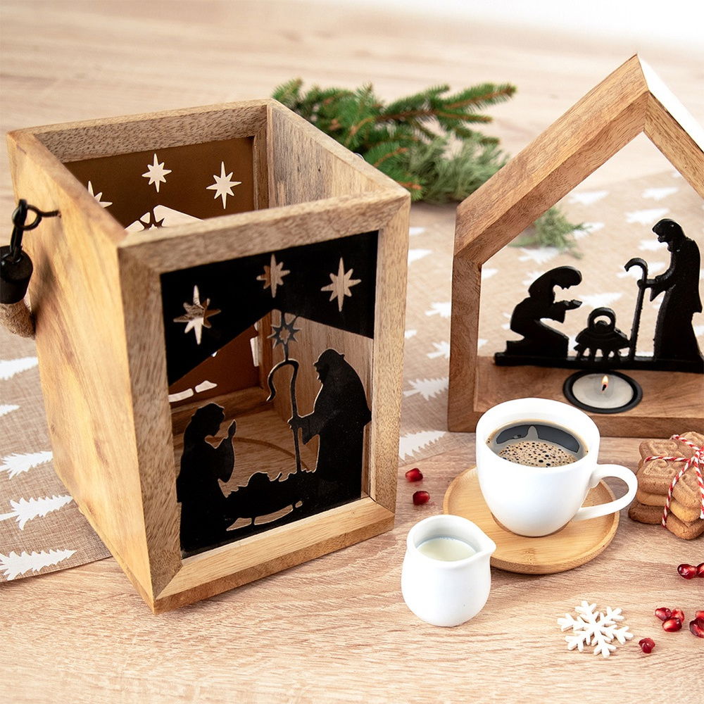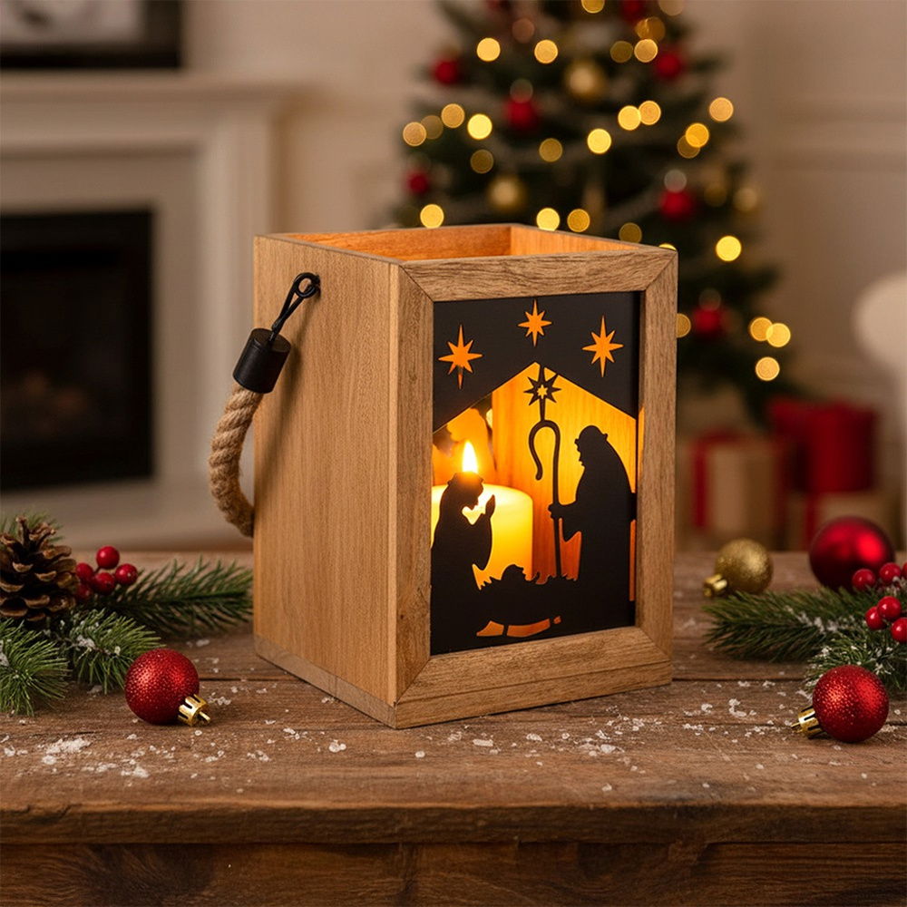 Lampion Świąteczny Drewniany na Świeczkę Szopka Latarnia Świecznik Święta