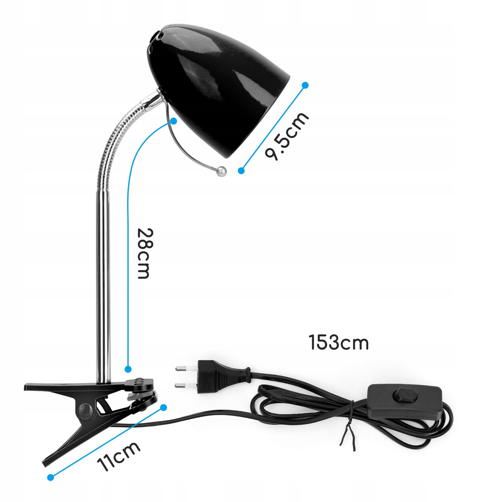Lampka biurkowa Aigostar to praktyczne i estetyczne oświetlenie przeznaczone do nauki, pracy czy czytania. Wyposażona w mocny klips, który umożliwia łatwe przypięcie do blatu, półki lub biurka, dzięki czemu nie zajmuje dodatkowego miejsca. Minimalistyczna, czarna konstrukcja wykonana w całości z metalu gwarantuje trwałość i niezawodność. Regulowana oprawka pozwala dostosować kąt padania światła w zależności od potrzeb użytkownika. Przeznaczona do żarówek z gwintem E27, daje możliwość wyboru barwy i mocy światła.