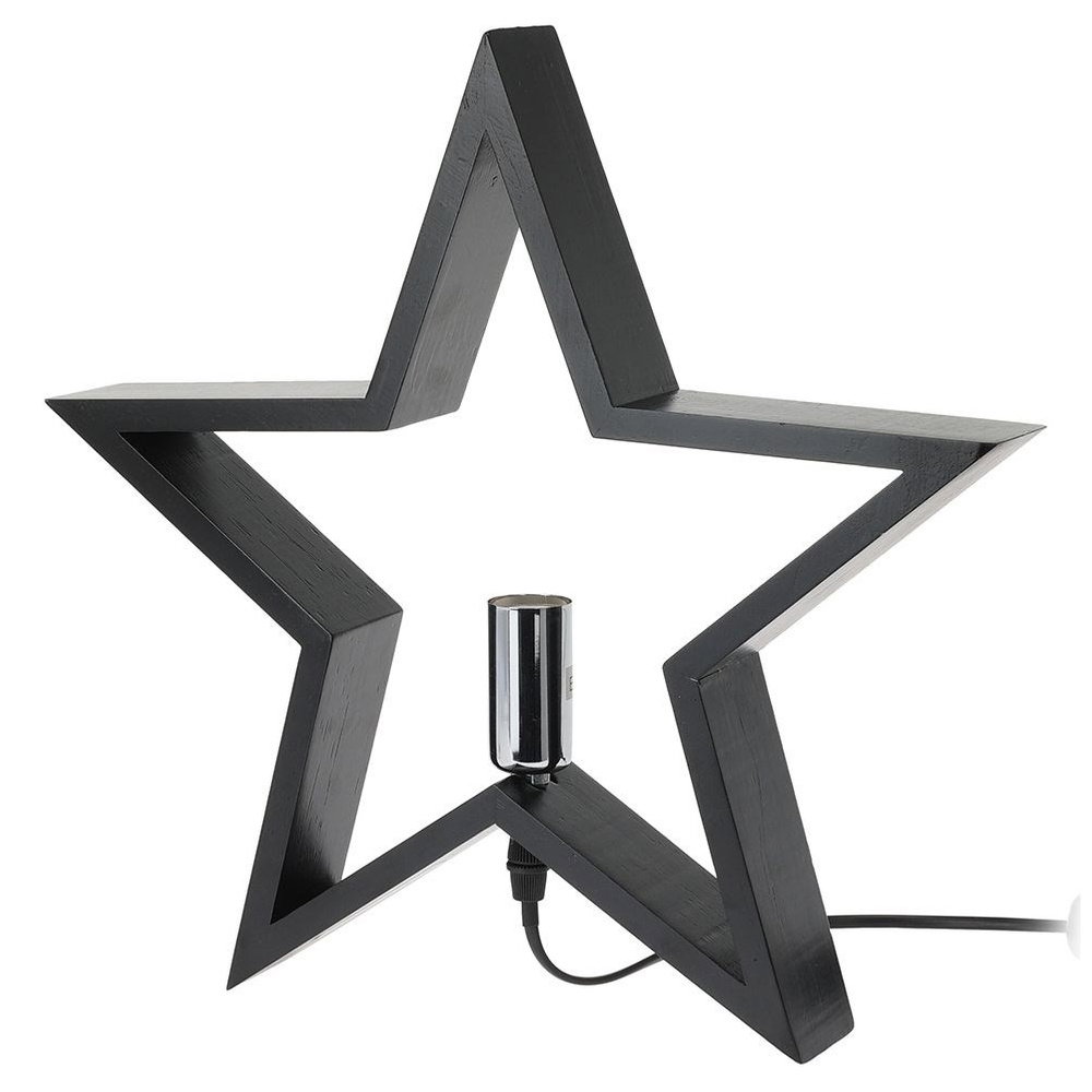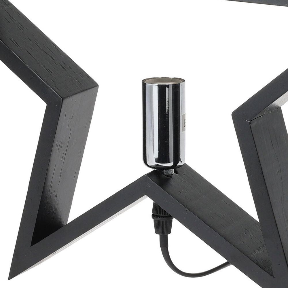 Lampka stołowa w kształcie gwiazdy. Utrzymana w modnym, czarnym kolorze. Nada wyjątkowego charakteru każdemu wnętrzu. Postawiona w salonie będzie tworzyć niepowtarzalny klimat. Świetnie sprawdzi się jako lampka nocna postawiona w sypialni. Kształt gwiazdy nadaje jej oryginalnego wyglądu. Posiada czarny kabel zasilający. Będzie idealnie komponować się z industrialnym stylem, ale dzięki klasycznej czerni pasuje do każdego wnętrza. Zapakowana w pudełko, stanowi wyjątkowy pomysł na prezent.