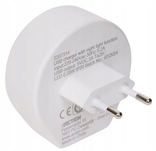Lampka nocna czujnik dzień noc z ładowarką sieciową USB-C Warm White