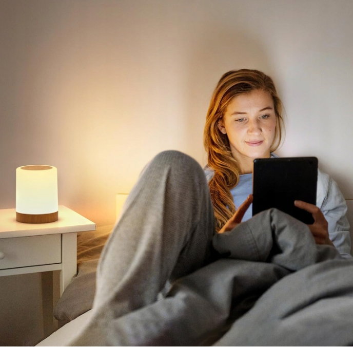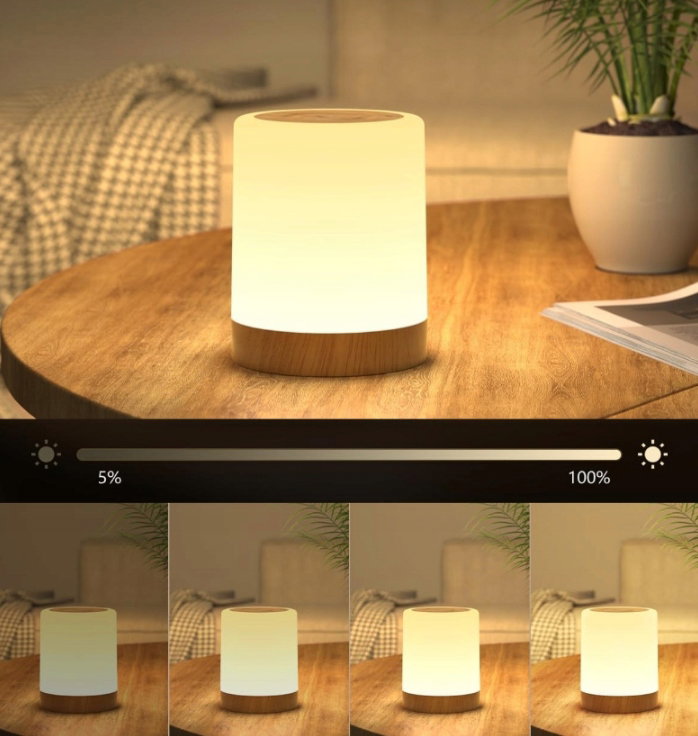- Lampka nocna LED z funkcją ściemniania, posiada nie tylko 5 poziomów jasności, ale także obsługuje bezstopniowe ściemnianie.
