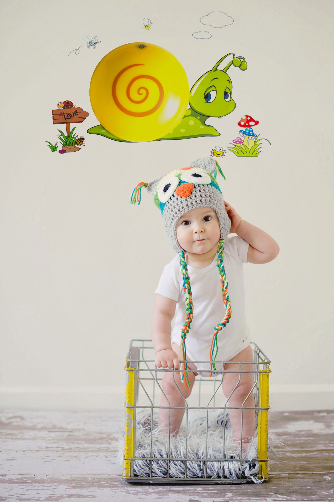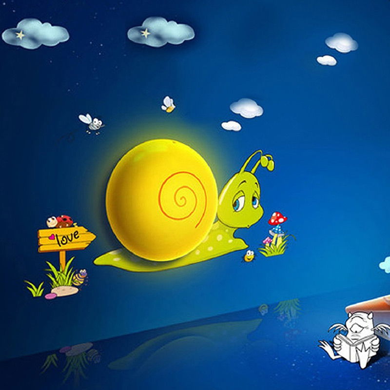 Lampka nocna z naklejkami dekoracyjnymi do pokoju dziecięcego - zielony ślimak L3DN-002
