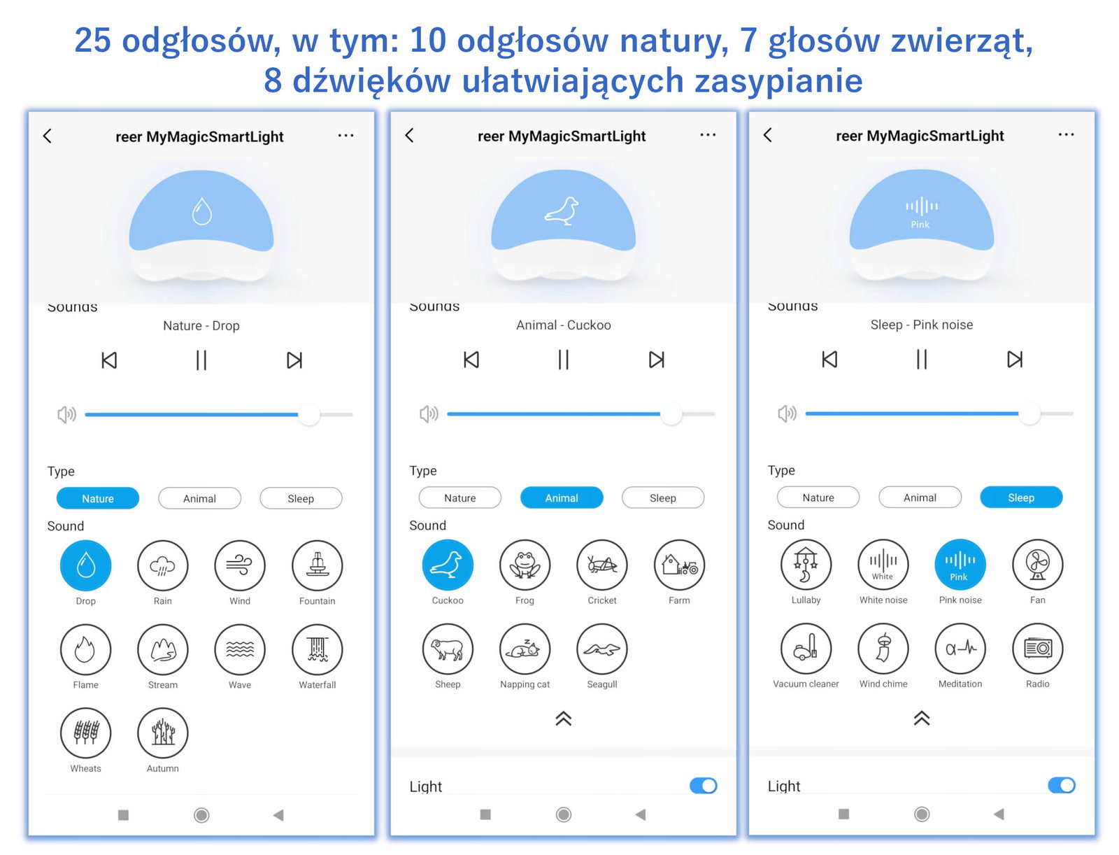 Funkcje lampki - 10 dźwięków natury, między innymi