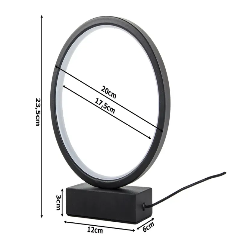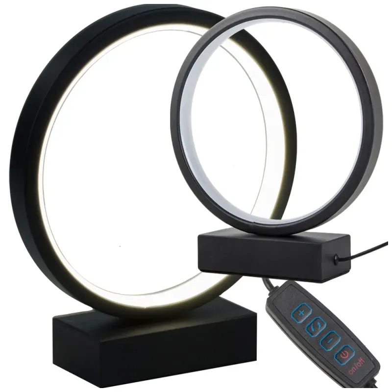 Lampka nocna stołowa okrąg pierścień fi20cm regulacja barwy i jasności