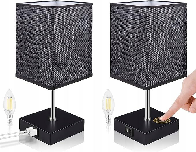 Lampka nocna z możliwością przyciemniania dotykowego .Zestaw 2 lampek stołowych LED z 2 portami szybkiego ładowania USB i 2 ściemnialnymi żarówkami