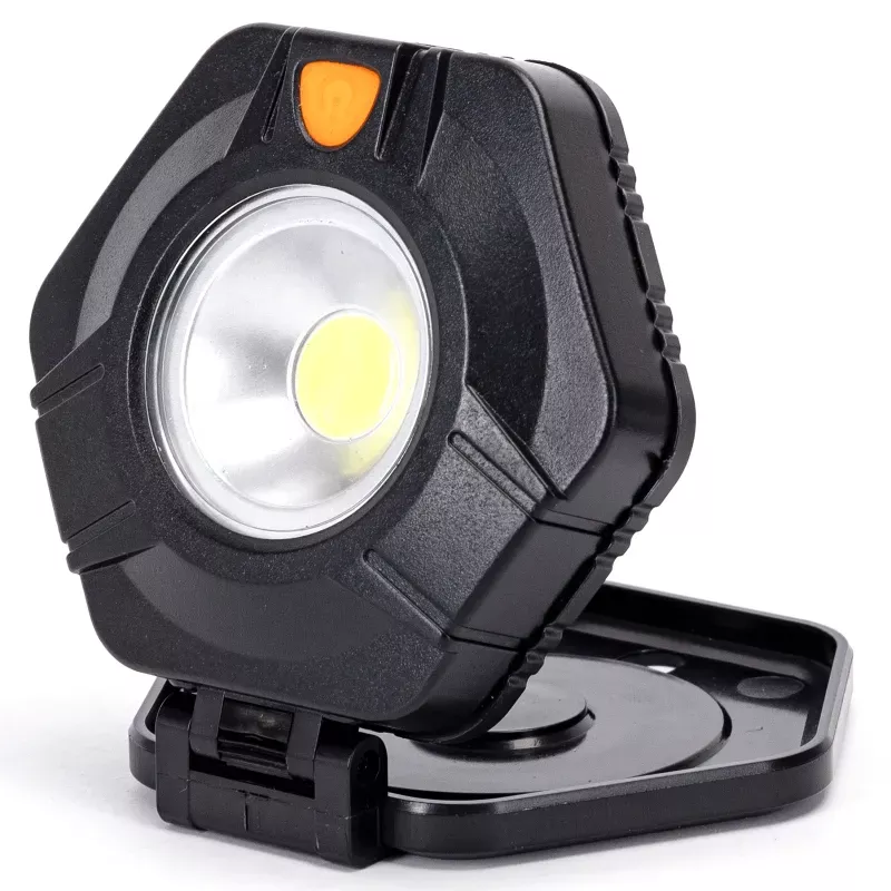 Dwie latarki led kształcie sześciokąta. Czarna lampka została wyposażona w źródło światła typu COB i posiada trzy jasności światła białego, czerwona to światło ostrzegawcze, ze względu na swoje niewielkie, a wręcz kompaktowe wymiary są bardzo praktyczne i użyteczne.