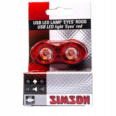 Simson Eyes to kompaktowe tylne światło rowerowe zasilane akumulatorem USB, wyposażone w diodę LED o mocy 3 Lux. Dzięki gumowemu paskowi montaż na sztycy lub bagażniku to szybka i prosta operacja — bez narzędzi i wiercenia.