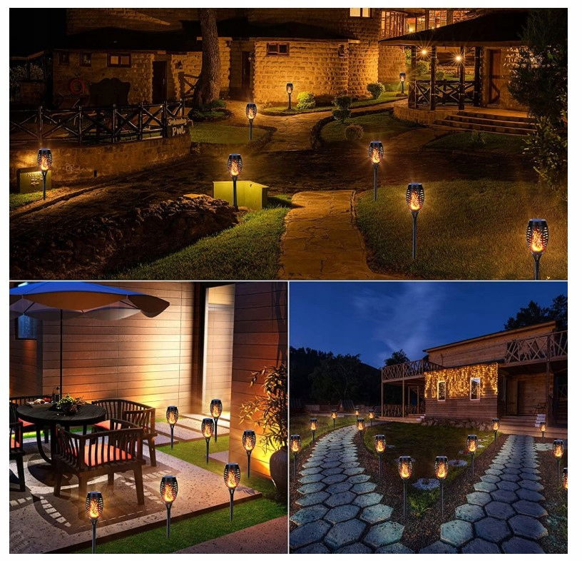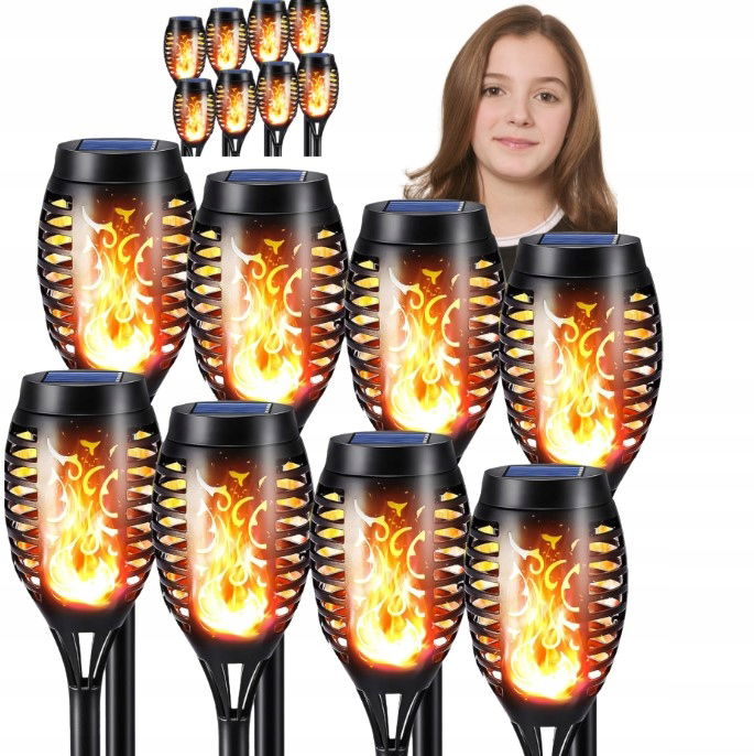 NEXVIN Solar Flame Lights Outdoor Garden to zestaw 8 sztuk pochodni słonecznych z realistycznym efektem płomienia, idealnych do dekoracji ogrodu, trawnika, ścieżek i korytarzy. Lampy tworzą fantastyczny efekt płomienia i jasną, ciepłą atmosferę, doskonale nadając się również na imprezy plenerowe. Wyposażone w czujnik światła, automatycznie włączają się o zmierzchu i wyłączają w ciągu dnia, ładując baterię energią słoneczną. Posiadają wodoodporność IP65, wykonane są z materiału ABS, dzięki czemu są odporne na deszcz, śnieg i mróz.