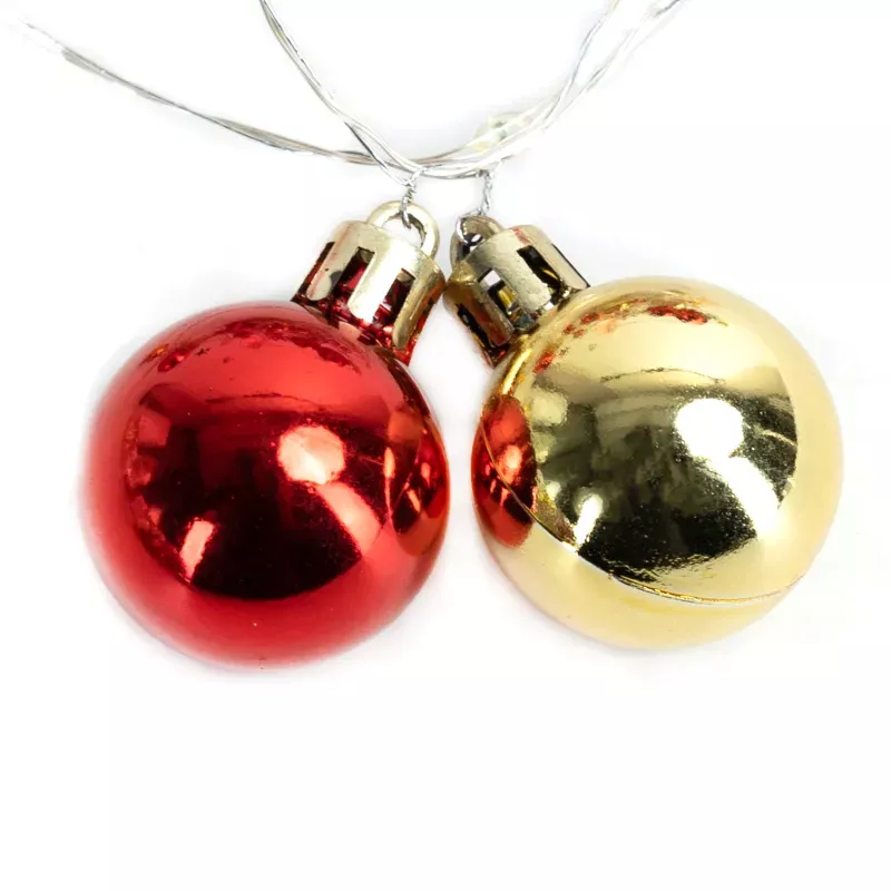 Lampki choinkowe 2m/20led bombki gwiazdki złote i czerwone na baterie